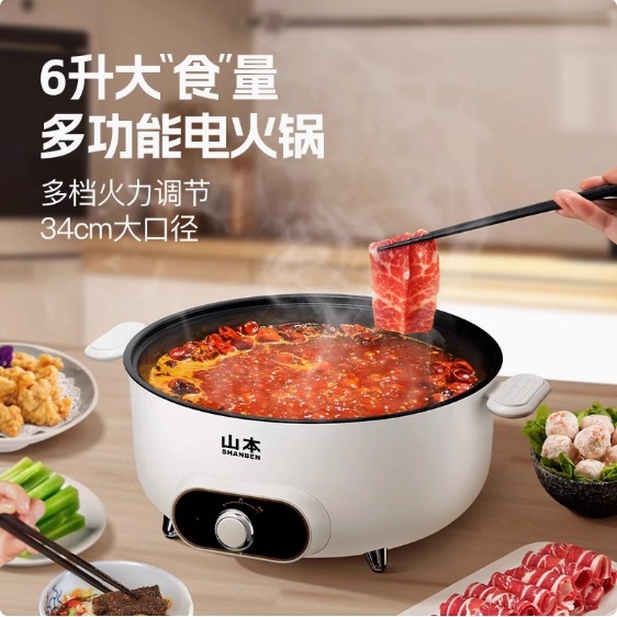 Yamamoto (SHANBEN) 6л бытовая электрическая кастрюля большой емкости, многофункциональная мощная кастрюля для приготовления пищи S-DHG005