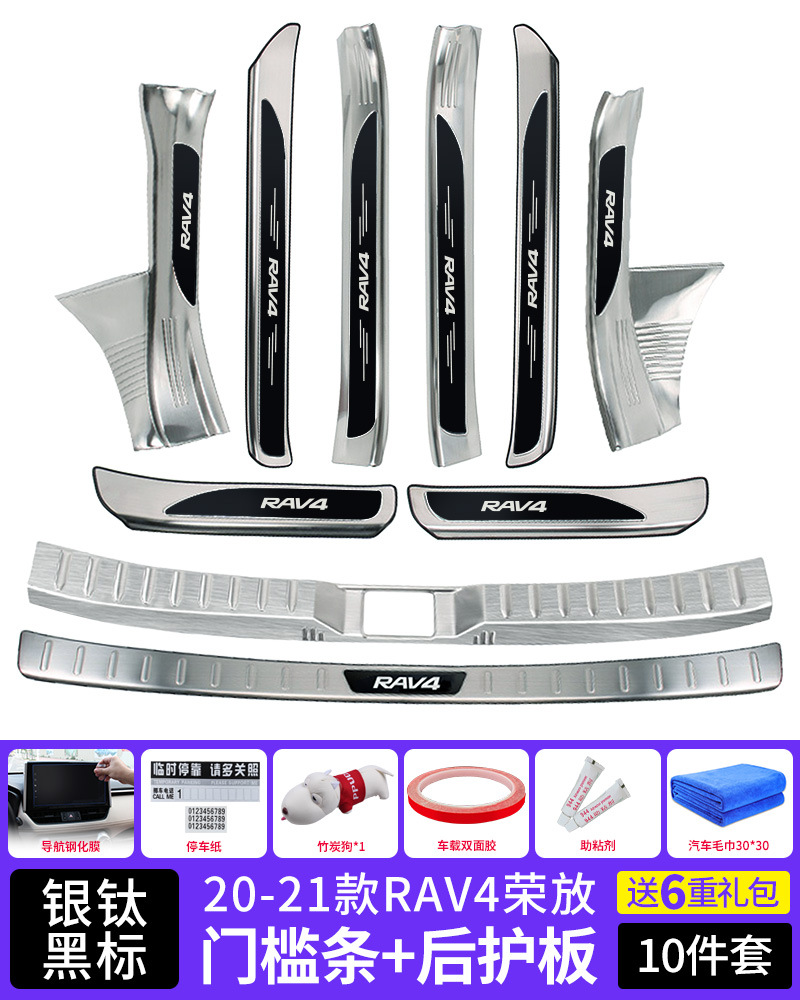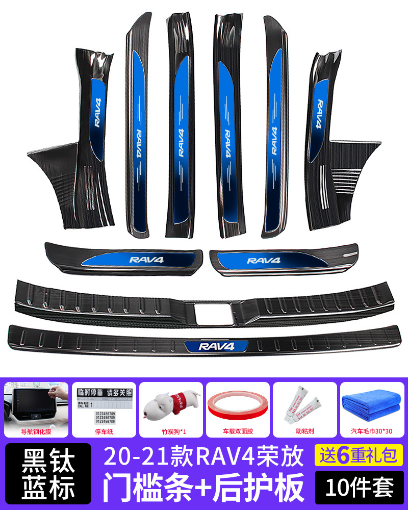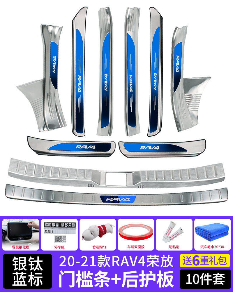 Новый RAV4 [пороговая планка + задняя защитная пластина] Серебристая титаново-синяя этикетка 10 шт.