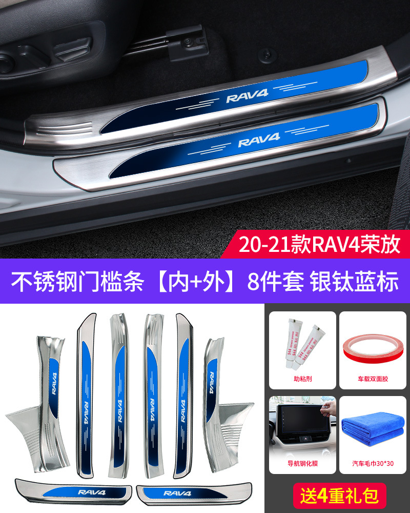 Новый RAV4 [Наружная + внутренняя пороговая полоса] Серебристый Титан-синяя этикетка 8 шт.