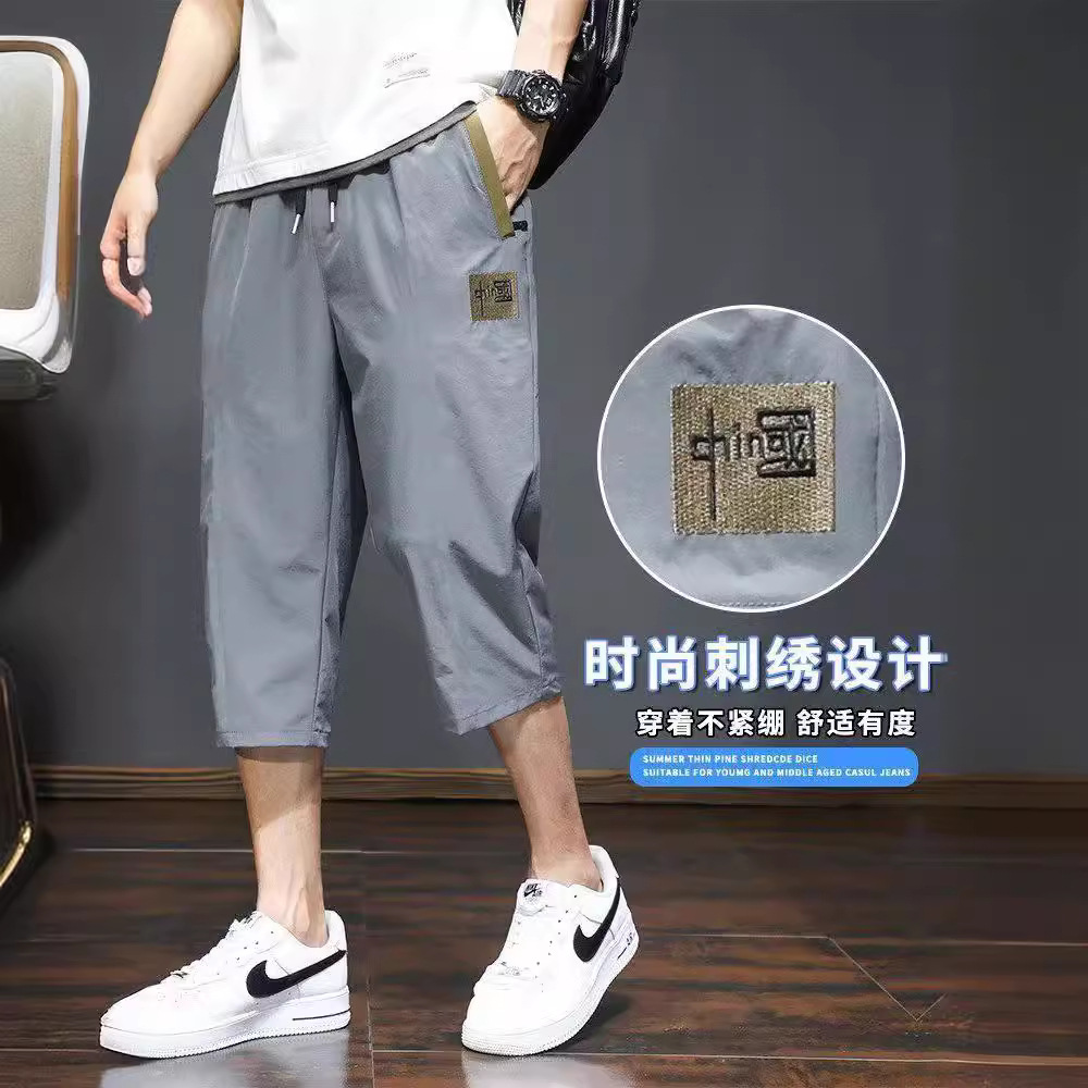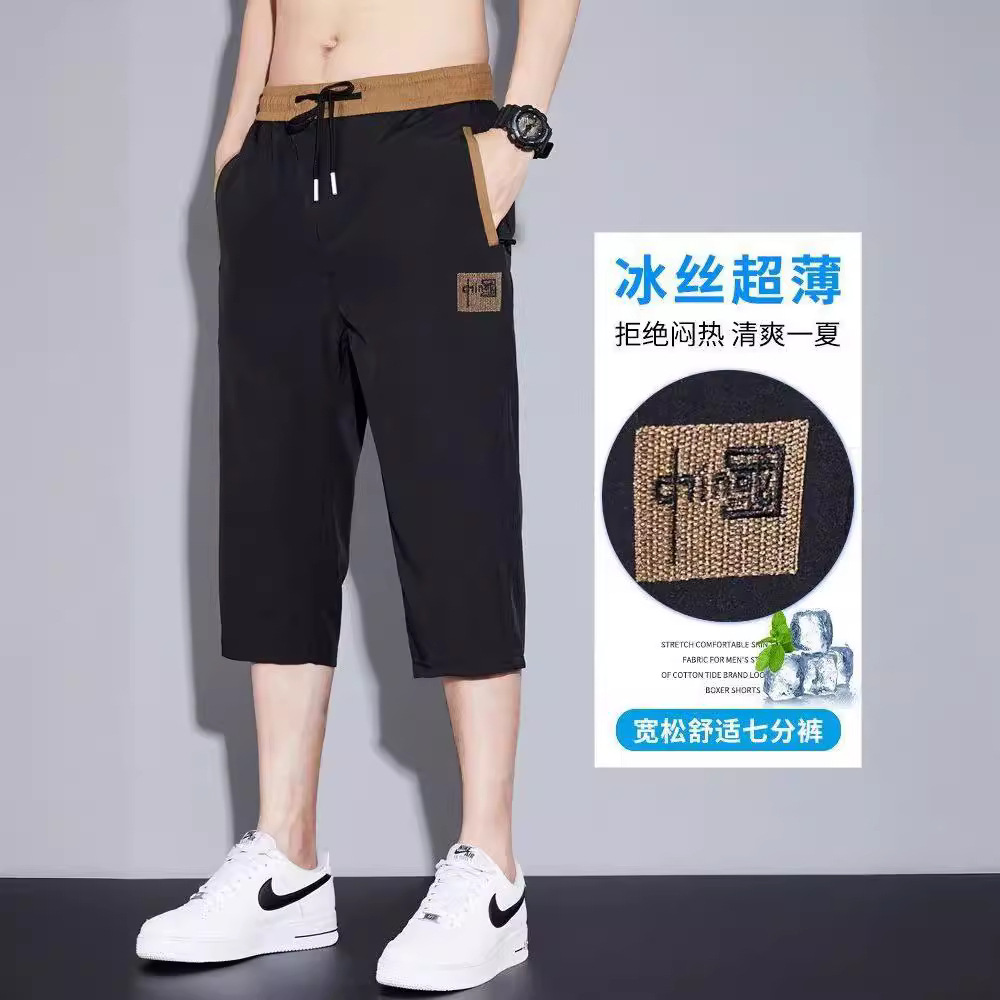 Летние тонкие укороченные брюки Мужские повседневные брюки из ледяного шелка Мужские свободные спортивные шорты Повседневные китайские брюки оптом