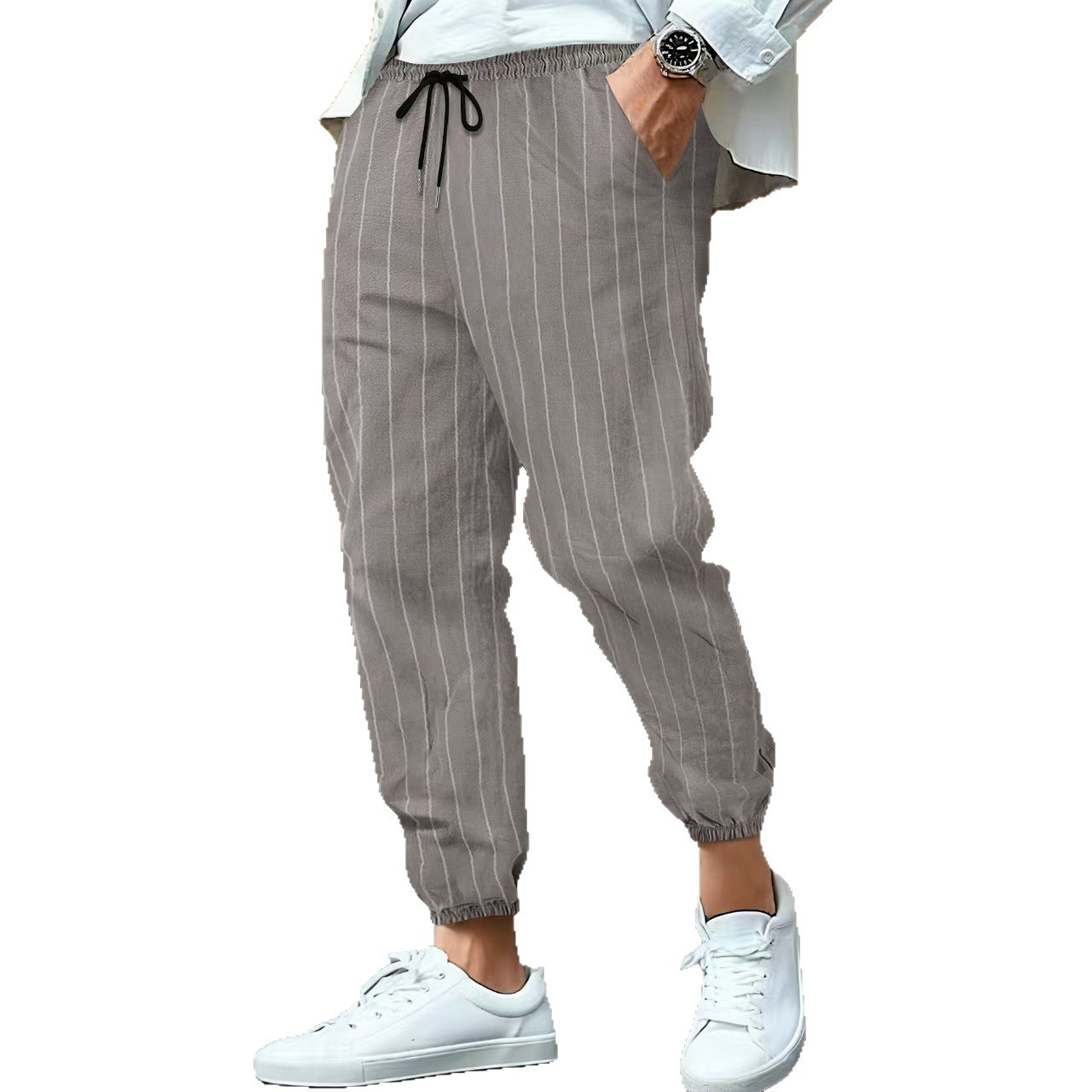 Главная страница > 2025 новые европейские и американские популярные повседневные мужские простые универсальные полосатые хлопковые и льняные свободные дышащие модные спортивные брюки