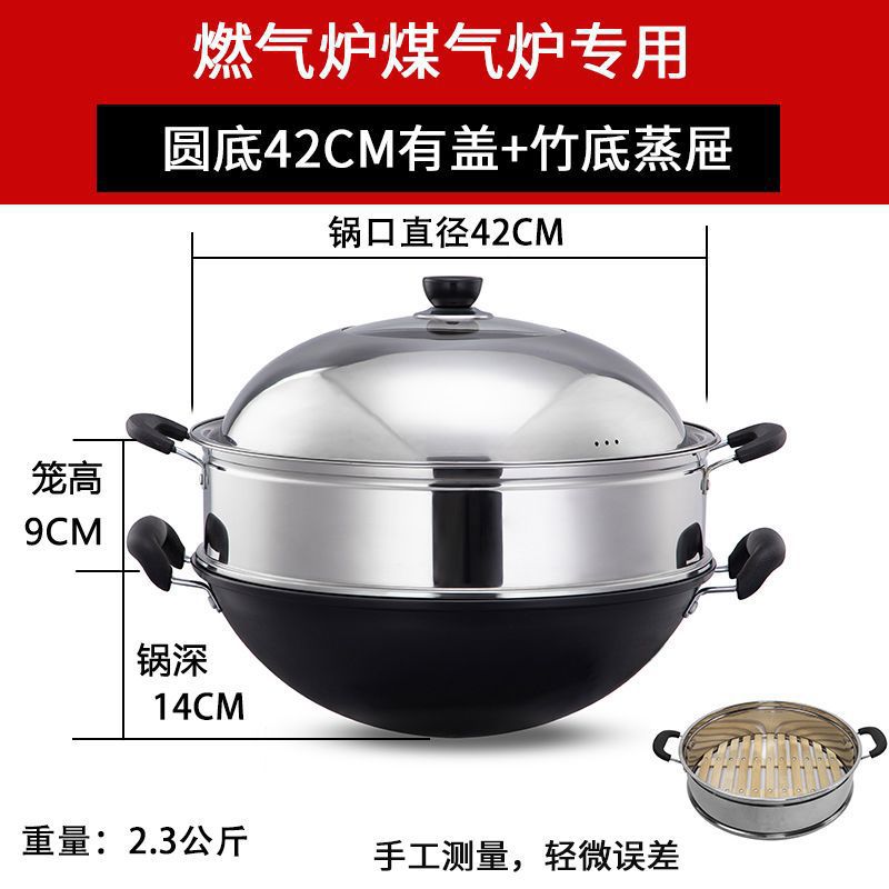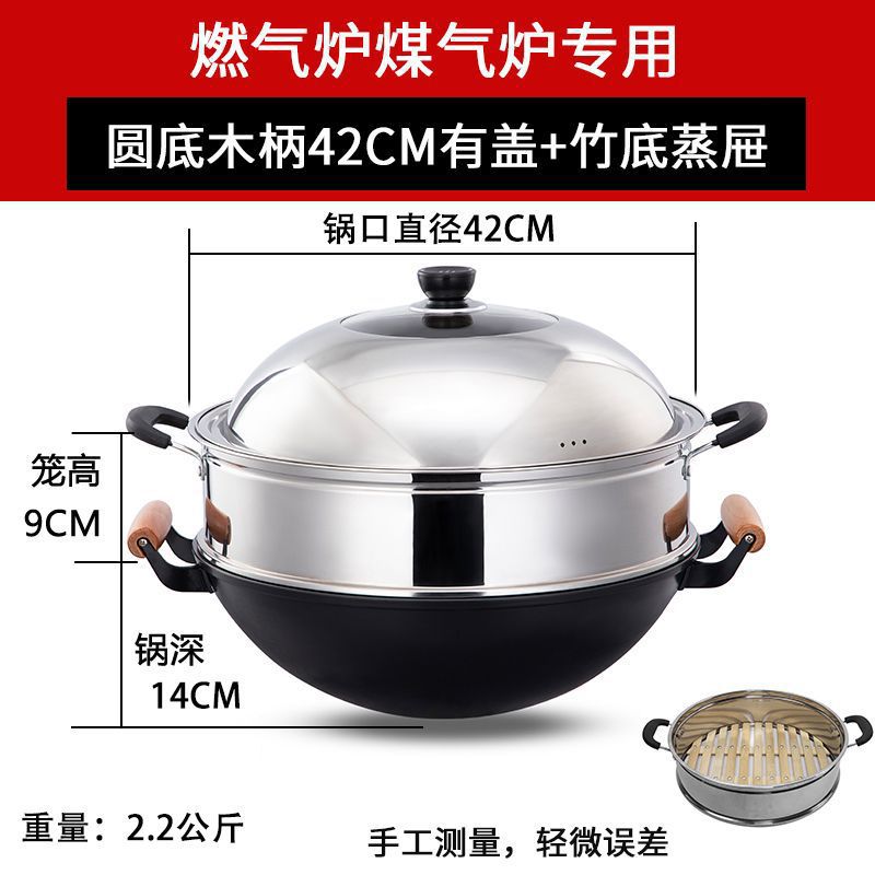 Ручка из цельного дерева с круглым дном + крышка кастрюли + пароварка с бамбуковым дном [бесплатная лопатка]