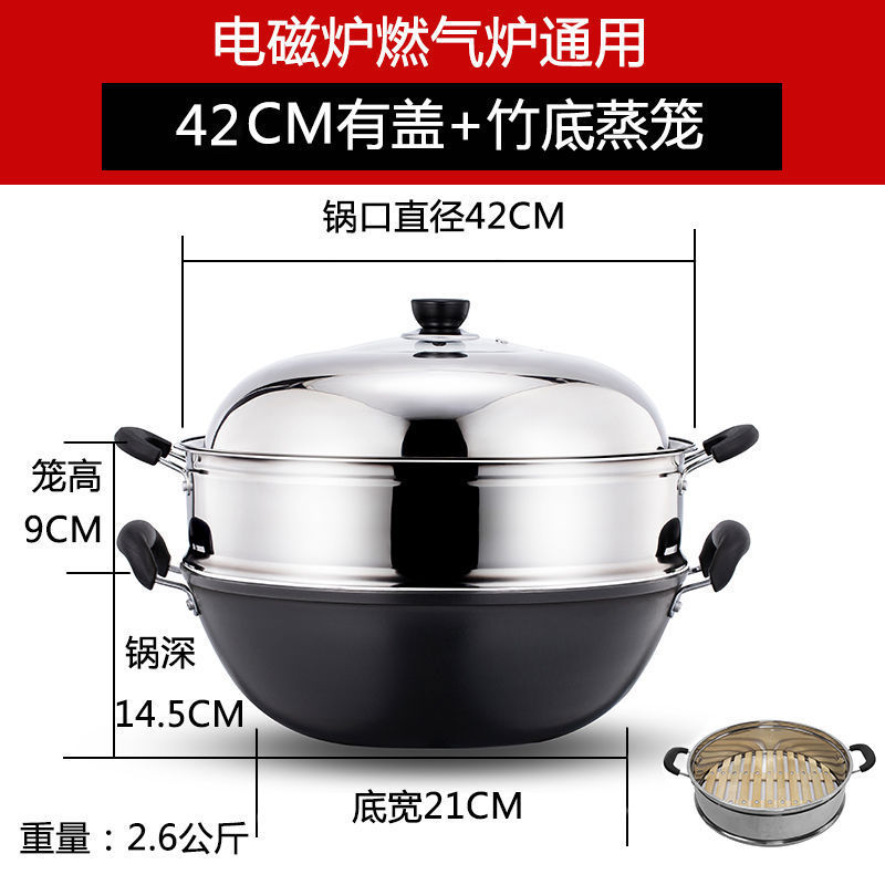 Кастрюля с круглым дном + видимая крышка + пароварка с бамбуковым дном [бесплатная лопаточка]