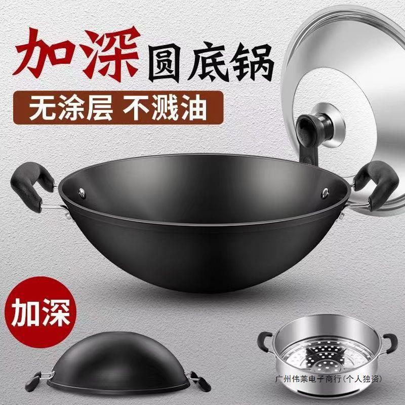 Главная страница > Глубокая кастрюля для тушения, старинная чугунная кастрюля, вок с двумя ручками, бытовой чугунный вок, очень большая антипригарная сковорода, оптовая продажа с фабрики