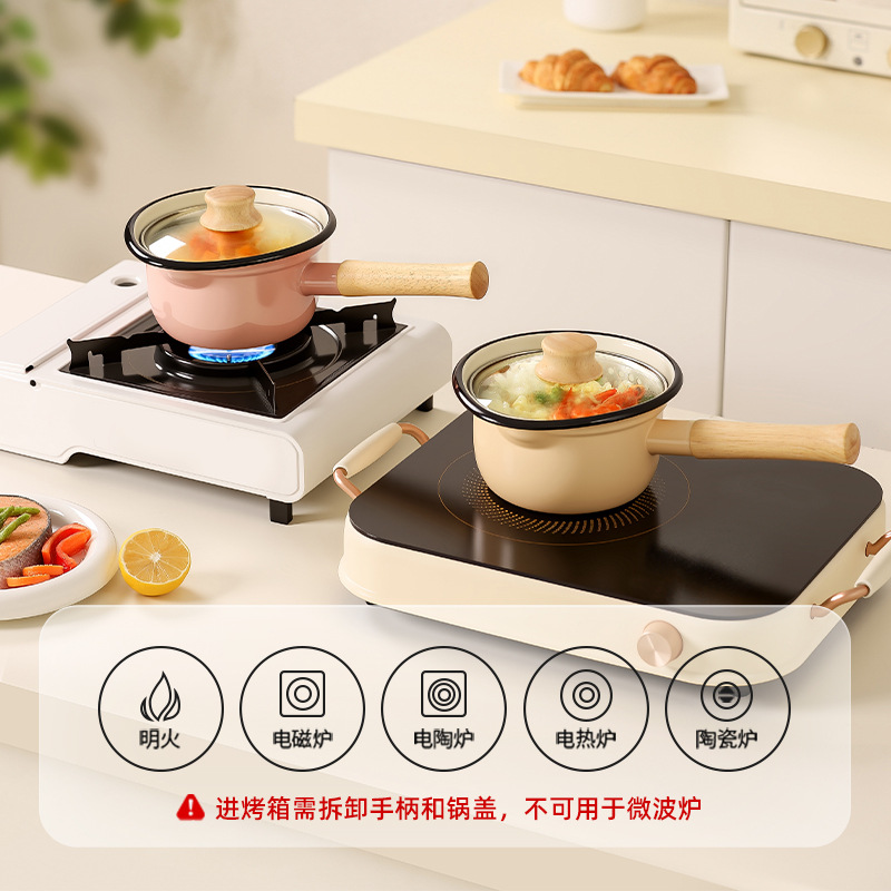 Япония импортировала эмалированный горшок FUJIHORO Fuji, эмалированный горшок, детская пищевая добавка, милый маленький молочный горшок, суповая кастрюля, новый стиль