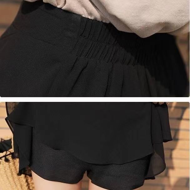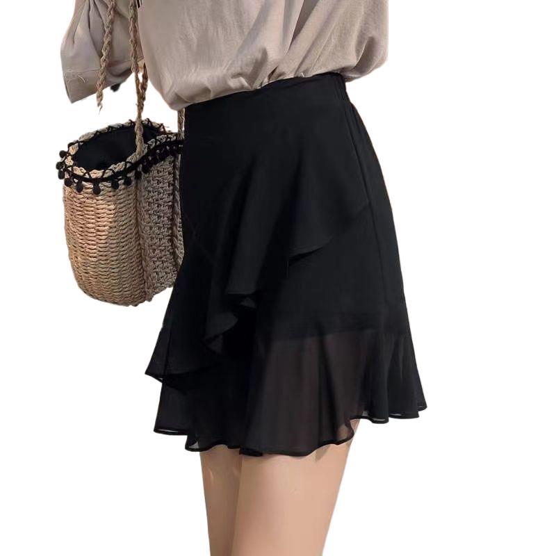Главная страница > Новая летняя черная короткая юбка «рыбий хвост», юбка с листьями лотоса, высокая талия, новые плиссированные брюки для танцев большого размера для женщин