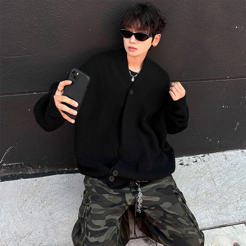 Главная страница > [Эксклюзивно для Sequence 77] Мужской свитер-кардиган Dao Pai, весна и осень, высококачественный вязаный свитер с v-образным вырезом Lazy, куртка в американском стиле.