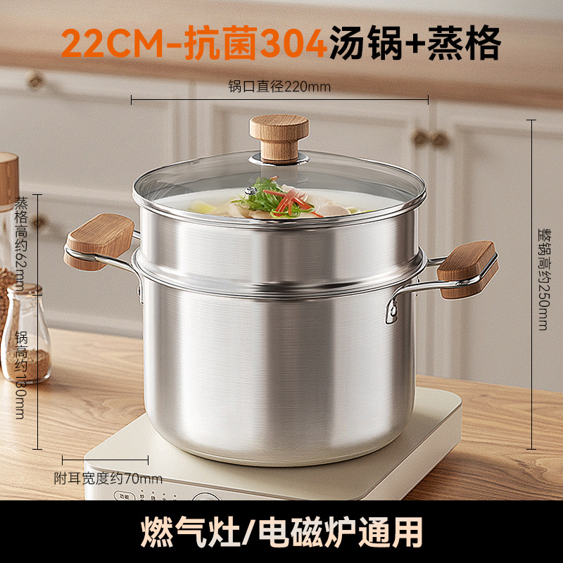 Суповая кастрюля диаметром 22 см [поставляется с решеткой для приготовления на пару] Материал 304