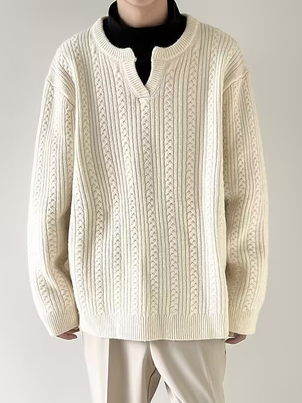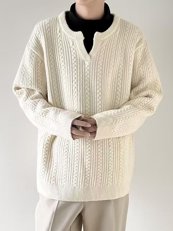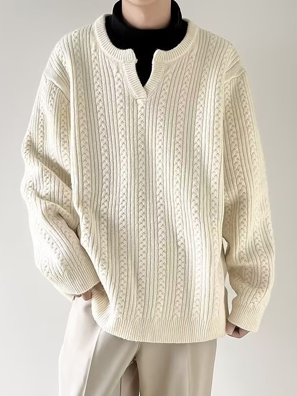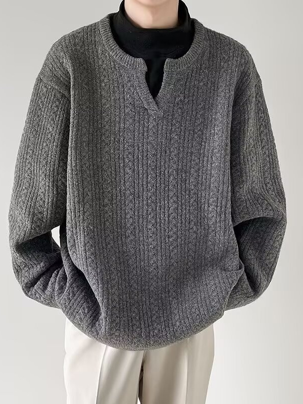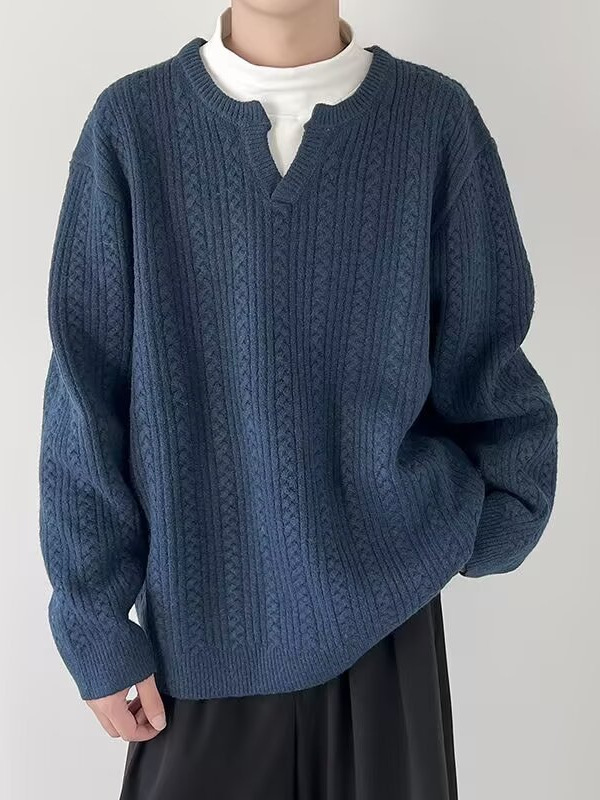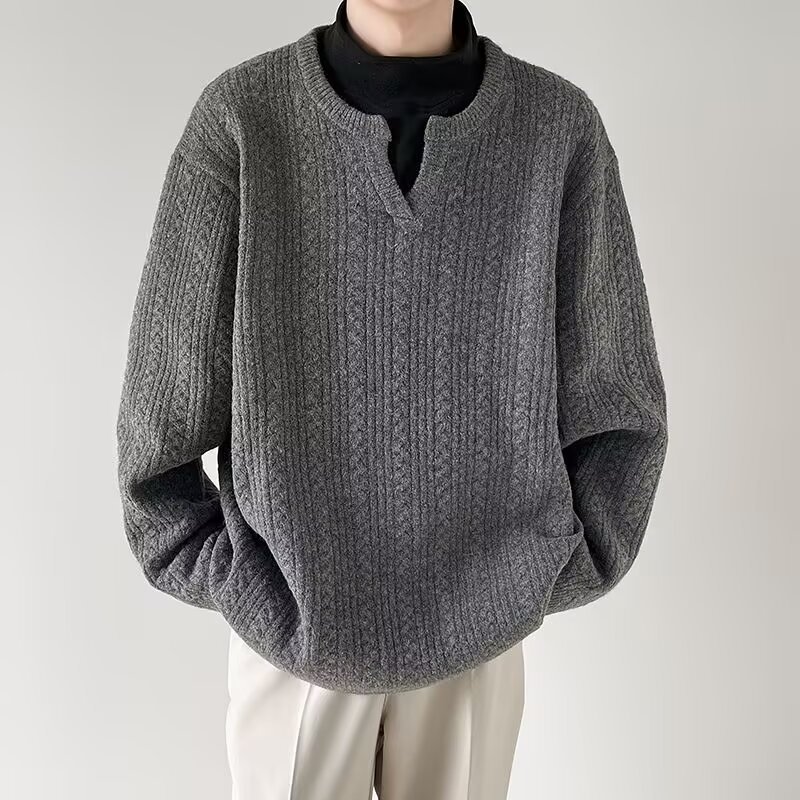 Главная страница > Осенний маленький пуловер с v-образным вырезом для мужчин, однотонный однотонный свитер в японском стиле, простой свободный ленивый стиль, универсальный повседневный вязаный ниточный оптовая продажа