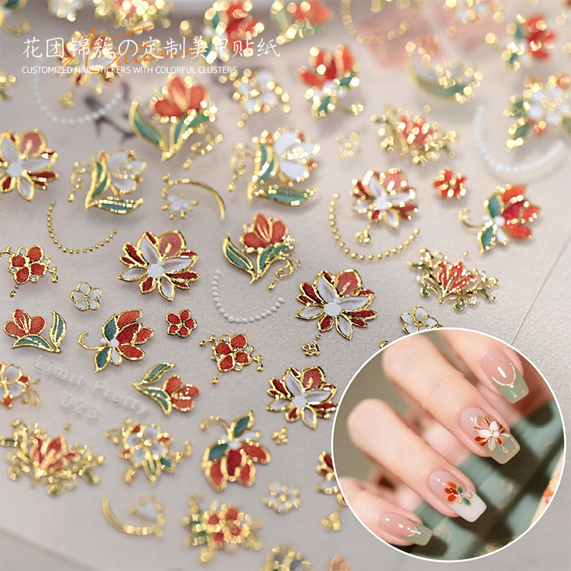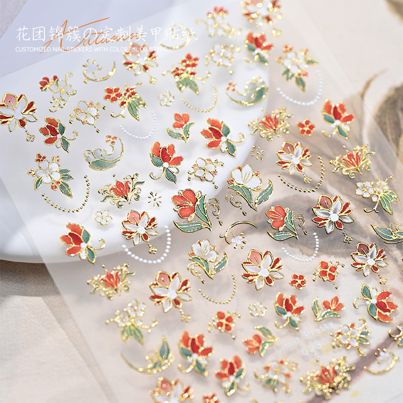 Главная страница > Модные новые элегантные наклейки для ногтей в китайском стиле с цветочным рисунком и тиснеными 3D цветочными украшениями для дизайна ногтей.
