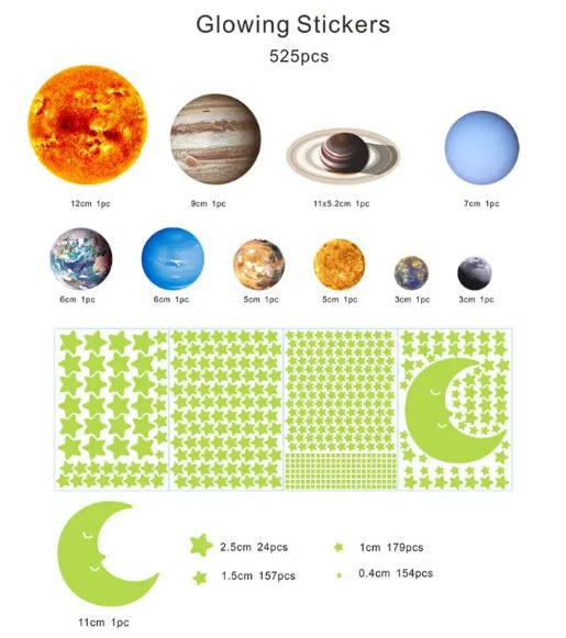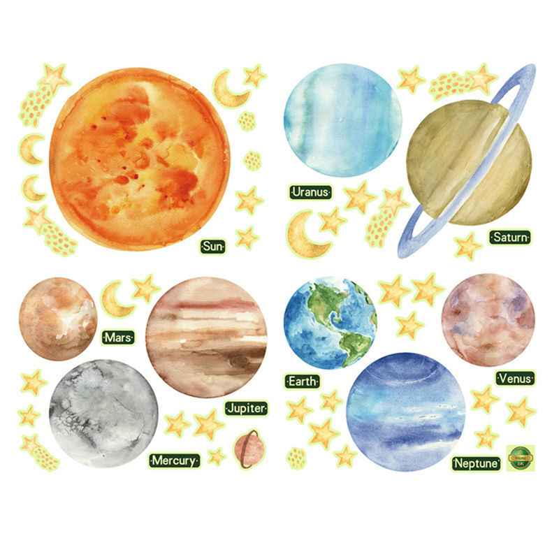 Главная страница > Девять планет в космосе, светящиеся наклейки на стену, звезды, метеорные точки, пятиконечные звезды, комбинируемые наклейки на стену, европейские и американские детские планеты