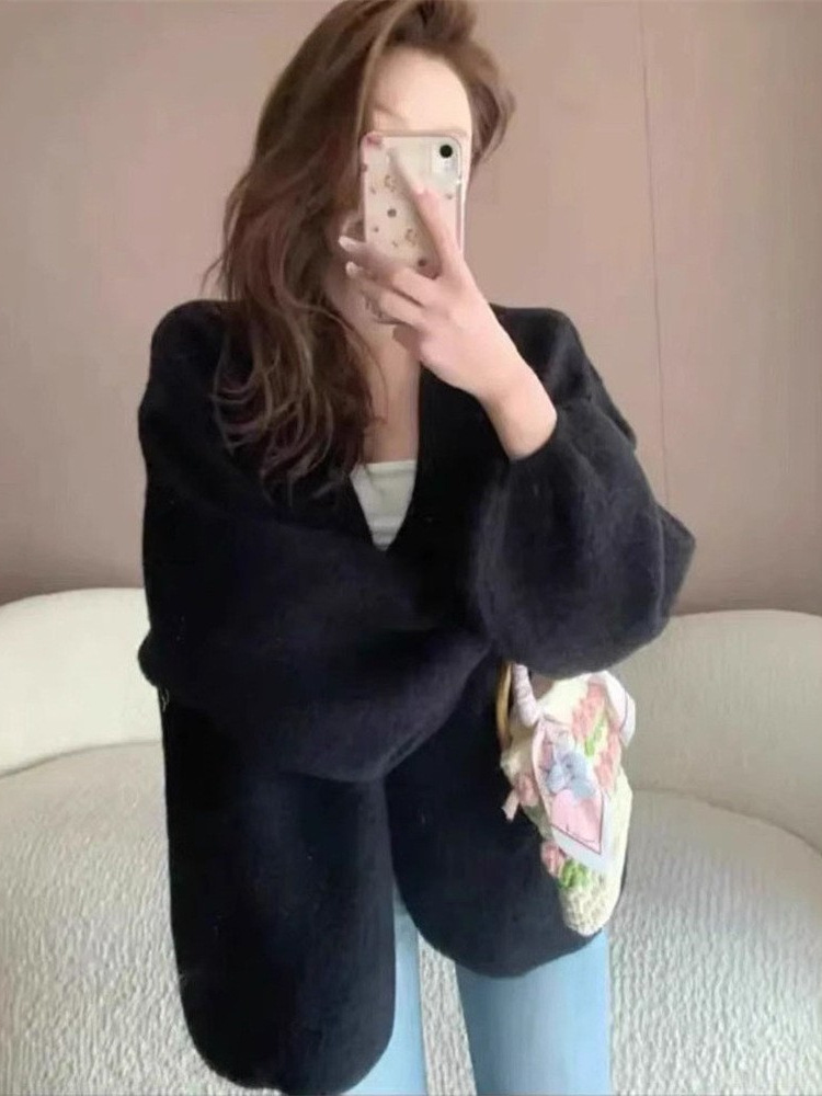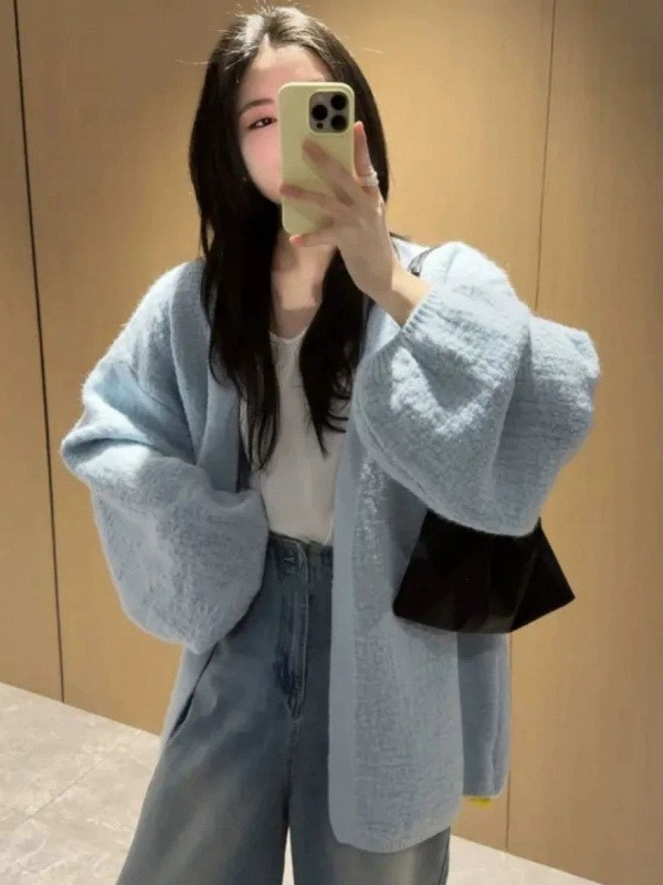 Главная страница > Новый корейский стиль, свободный ленивый стиль, мягкий восковой свитер, куртка для женщин, весна, осень и зима, новый универсальный вязаный кардиган, топ