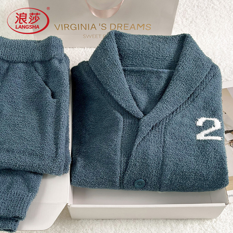Главная страница > Пижамы из полубархата, мужские зимние утепленные теплые костюмы с длинными рукавами и лацканами, зимняя мужская домашняя одежда из кораллового флиса