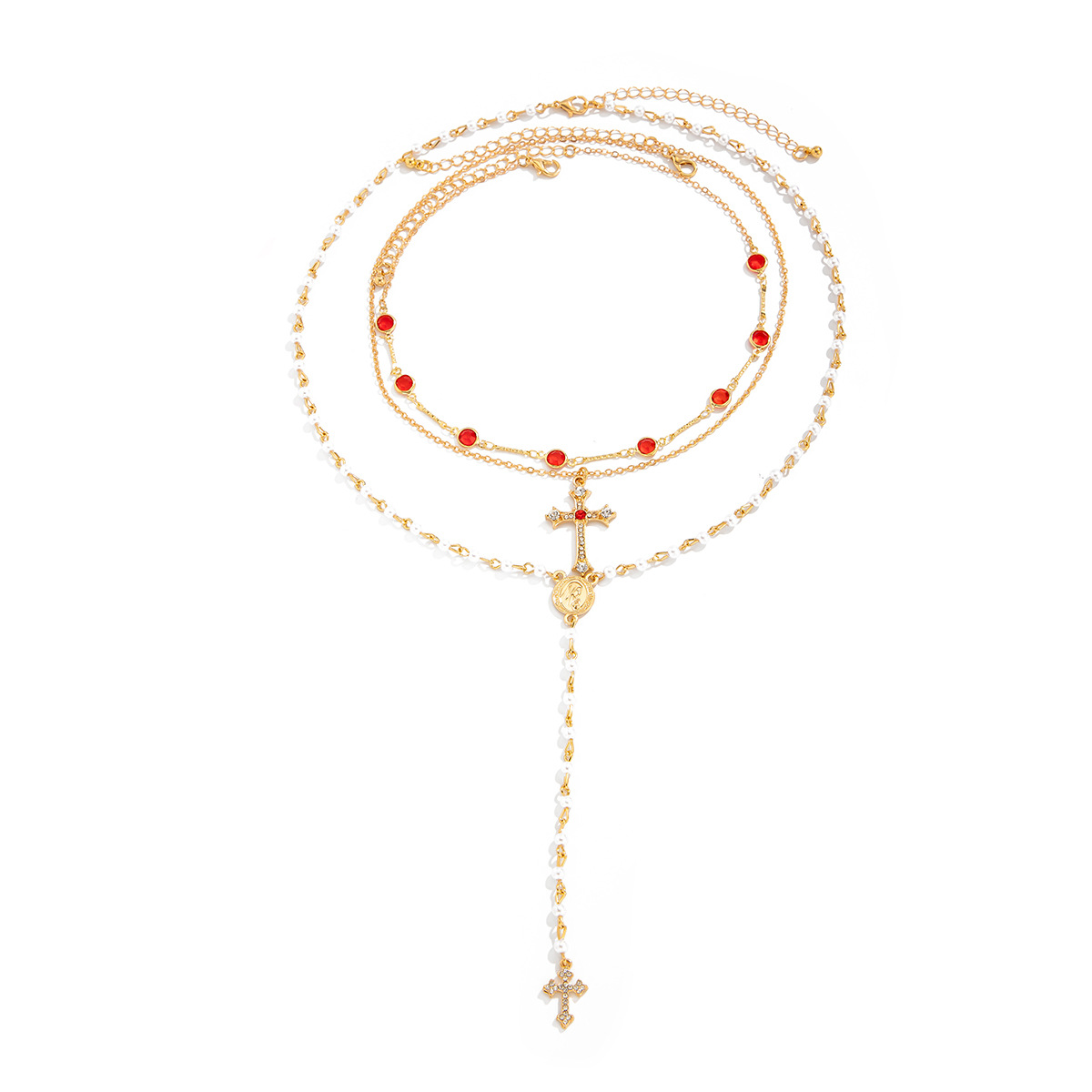 Главная страница > Европейское и американское трансграничное ожерелье в стиле хип-хоп с бриллиантовым крестом, модное ожерелье с цепочкой из искусственного жемчуга для женщин