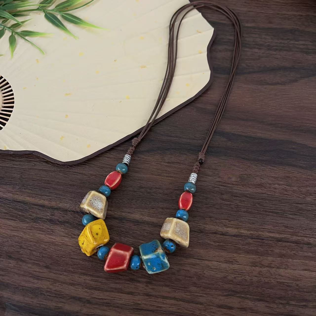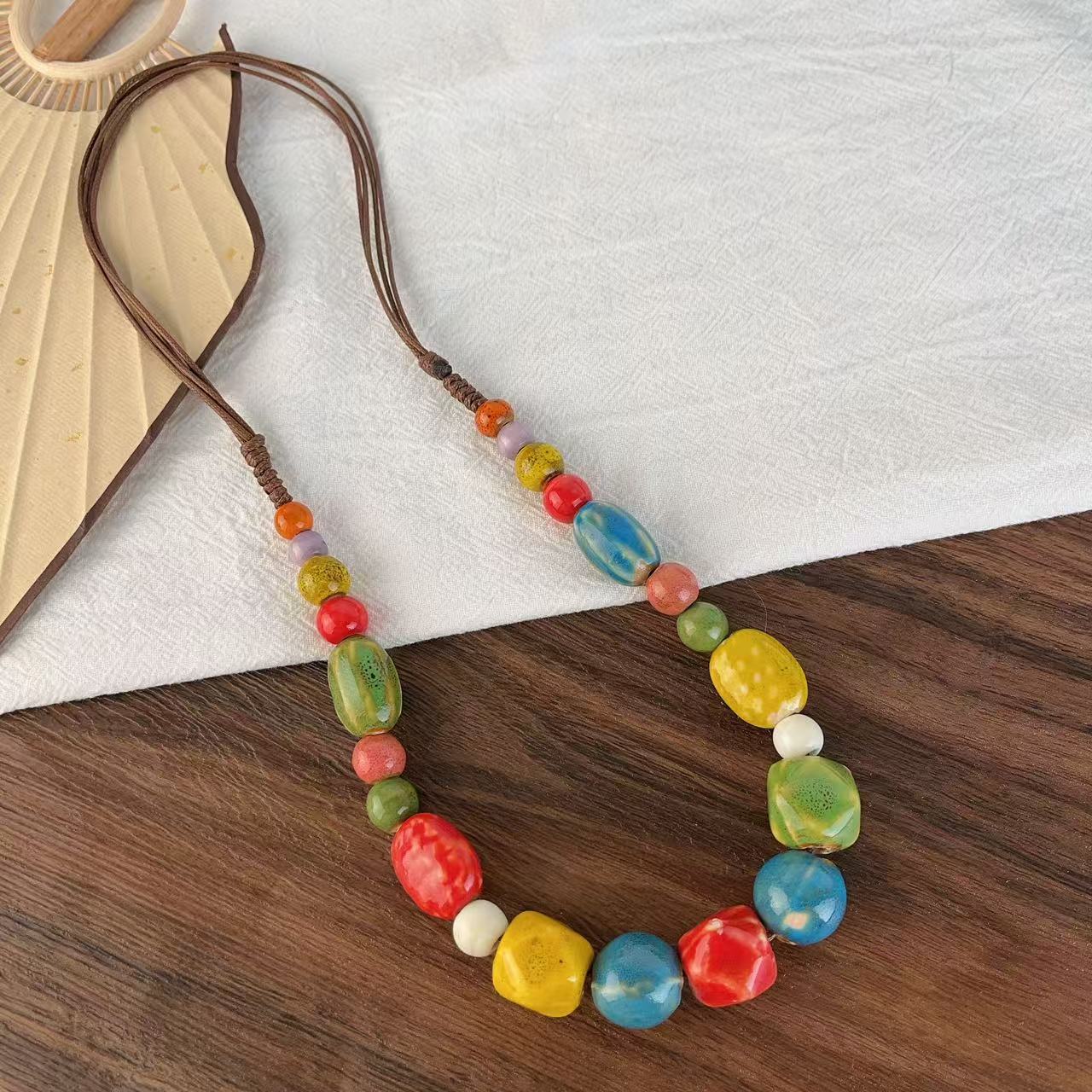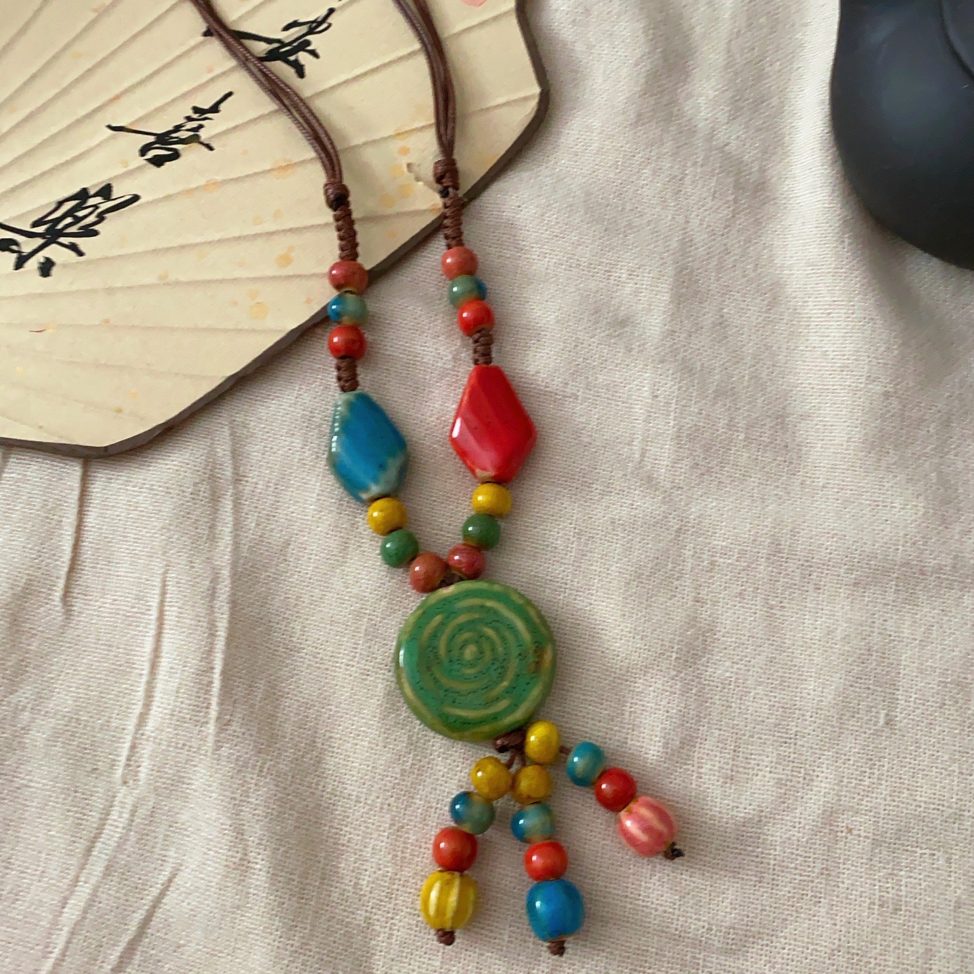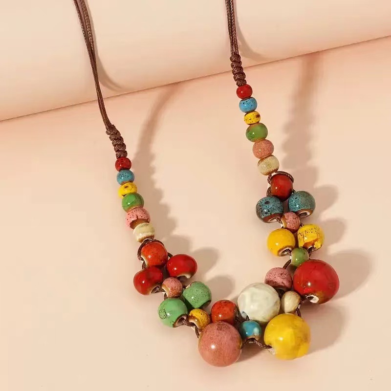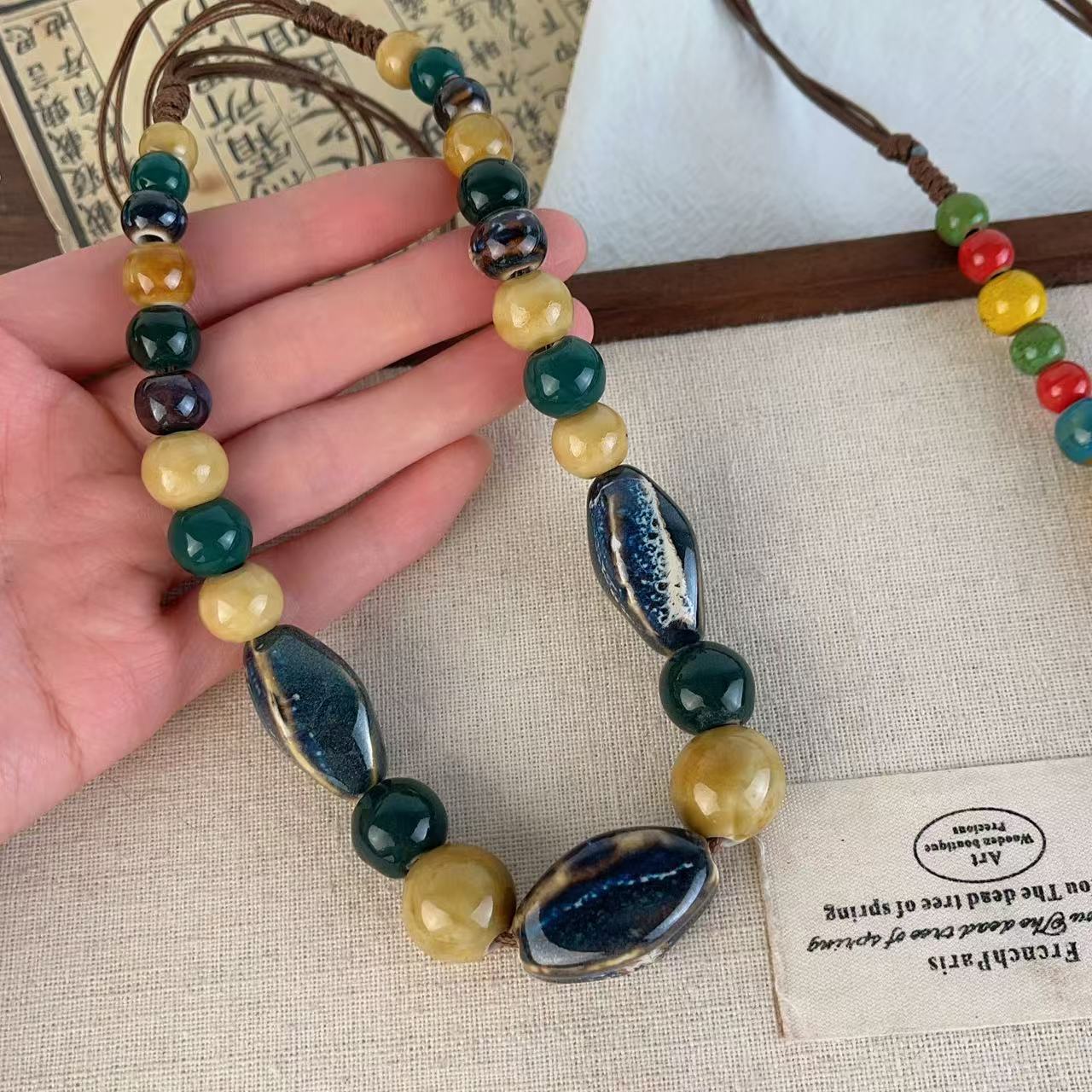 Красочное керамическое ожерелье из бисера в этническом стиле для женщин, новая плетеная цепочка на ключицу в китайском стиле, нишевый дизайн, универсальные аксессуары в стиле ретро