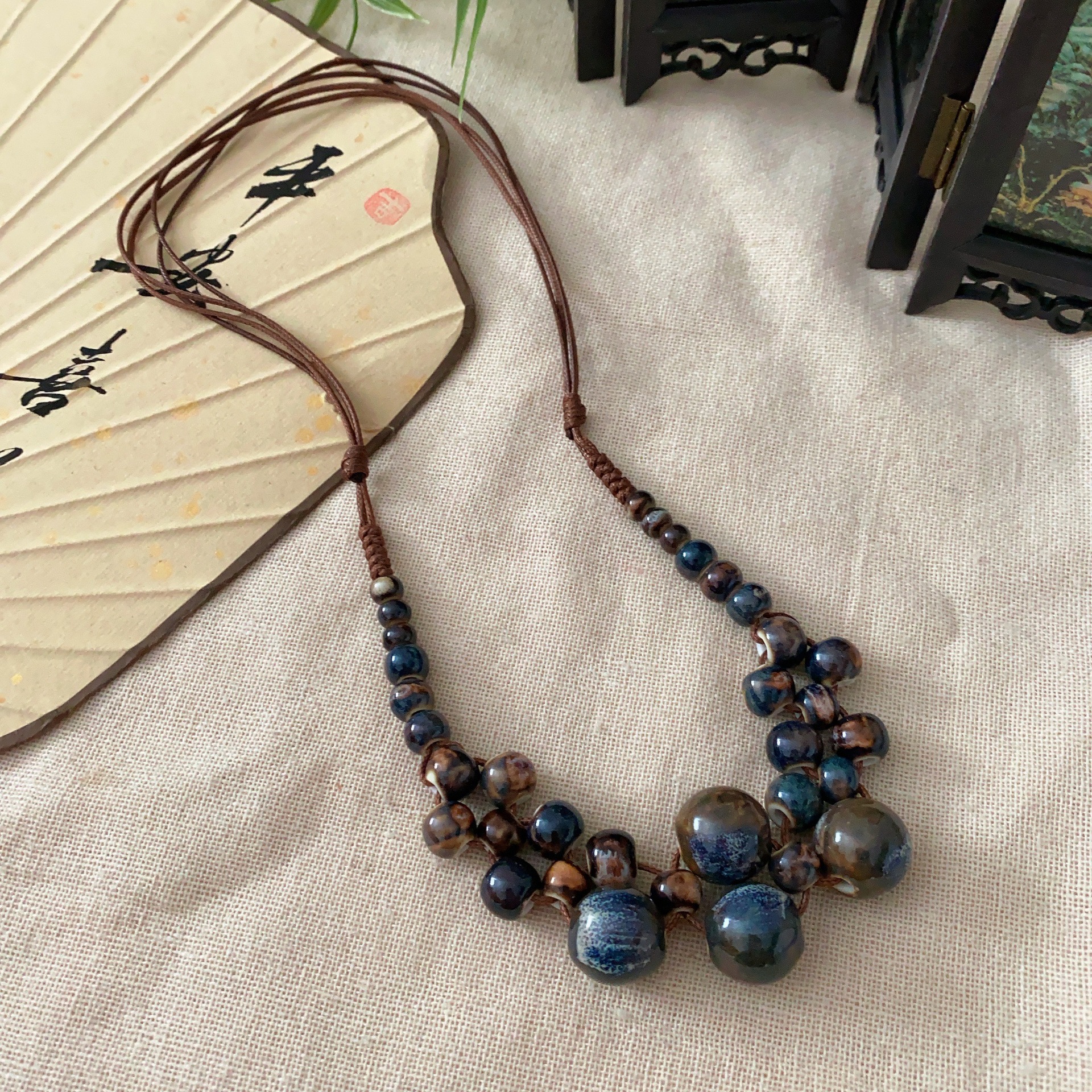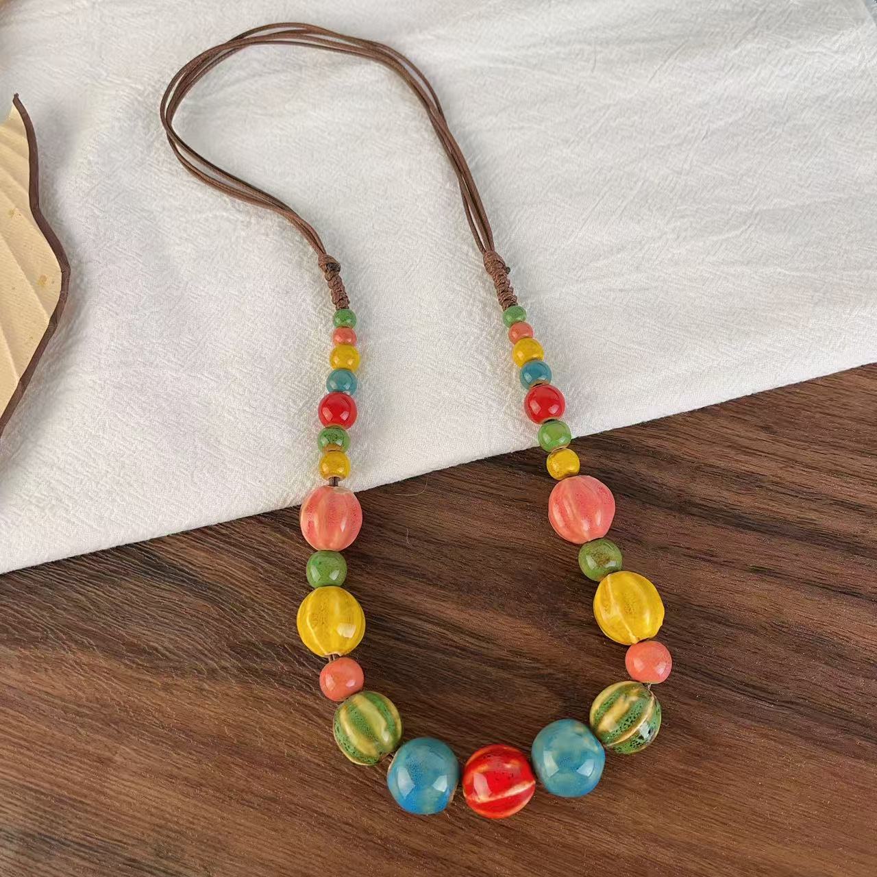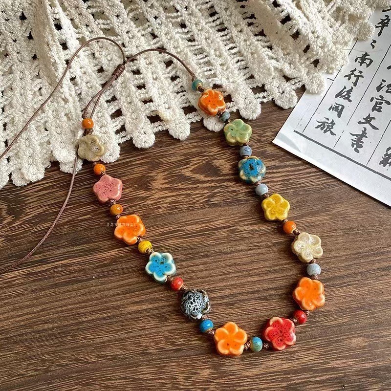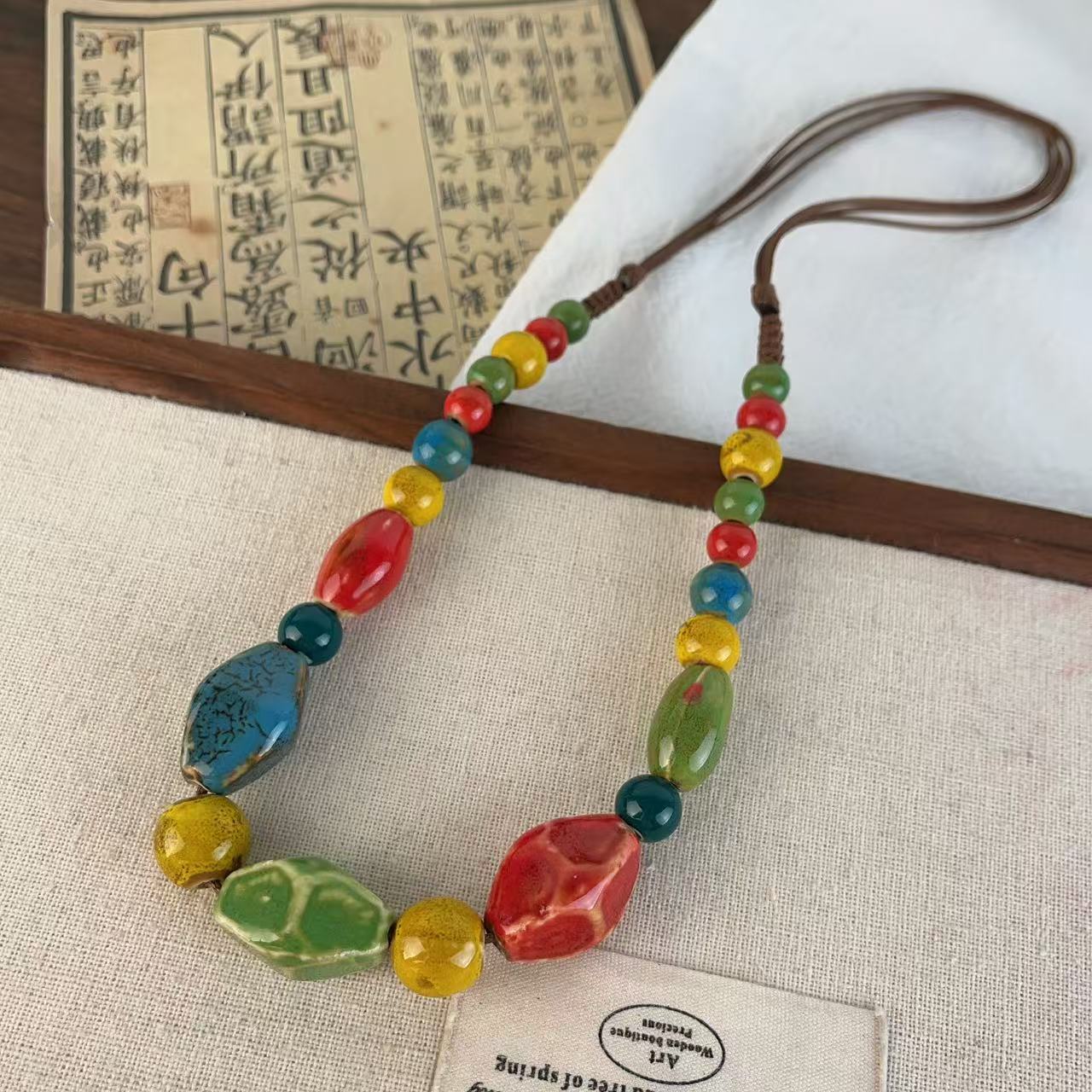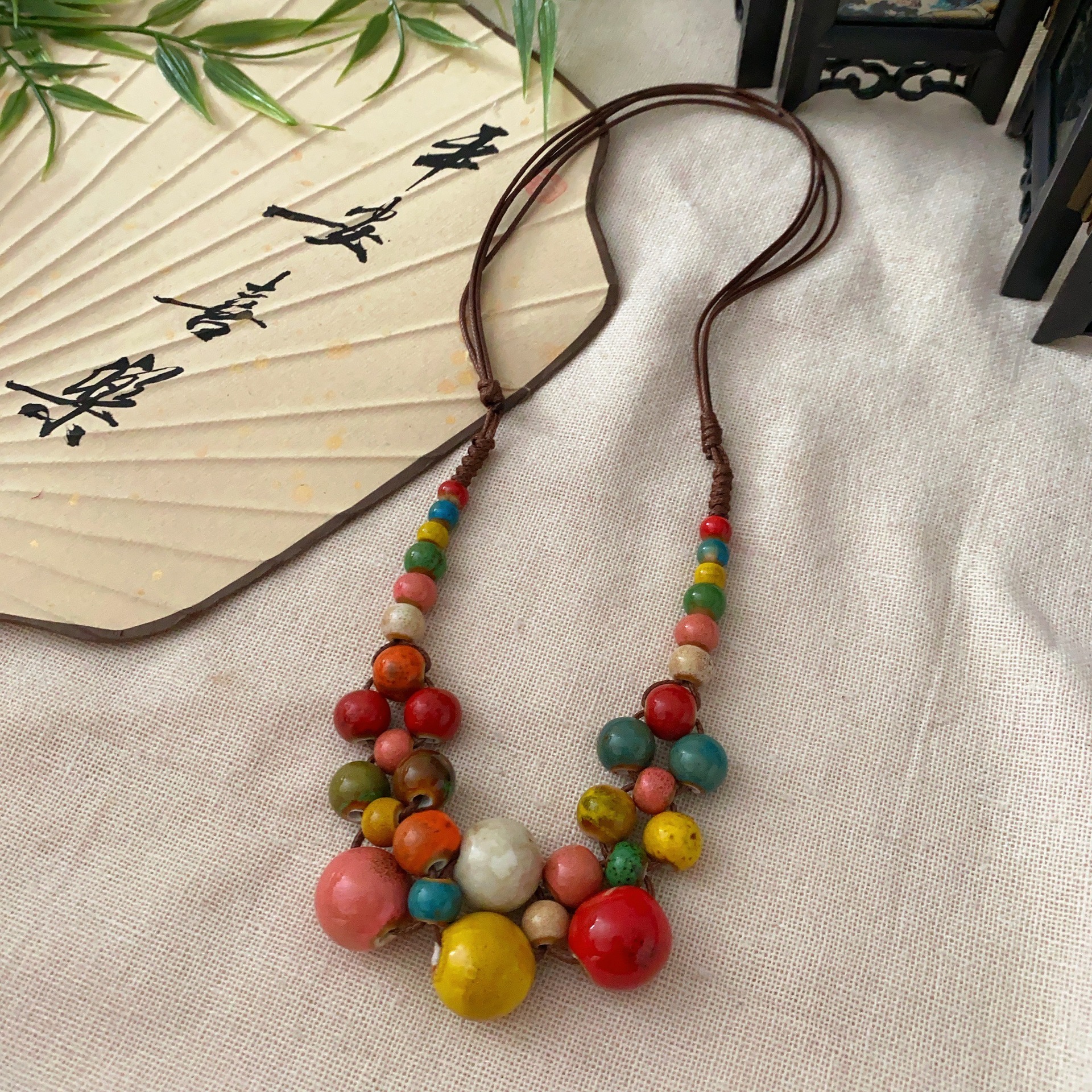 Красочное керамическое ожерелье из бисера в этническом стиле для женщин, новая плетеная цепочка на ключицу в китайском стиле, нишевый дизайн, универсальные аксессуары в стиле ретро
