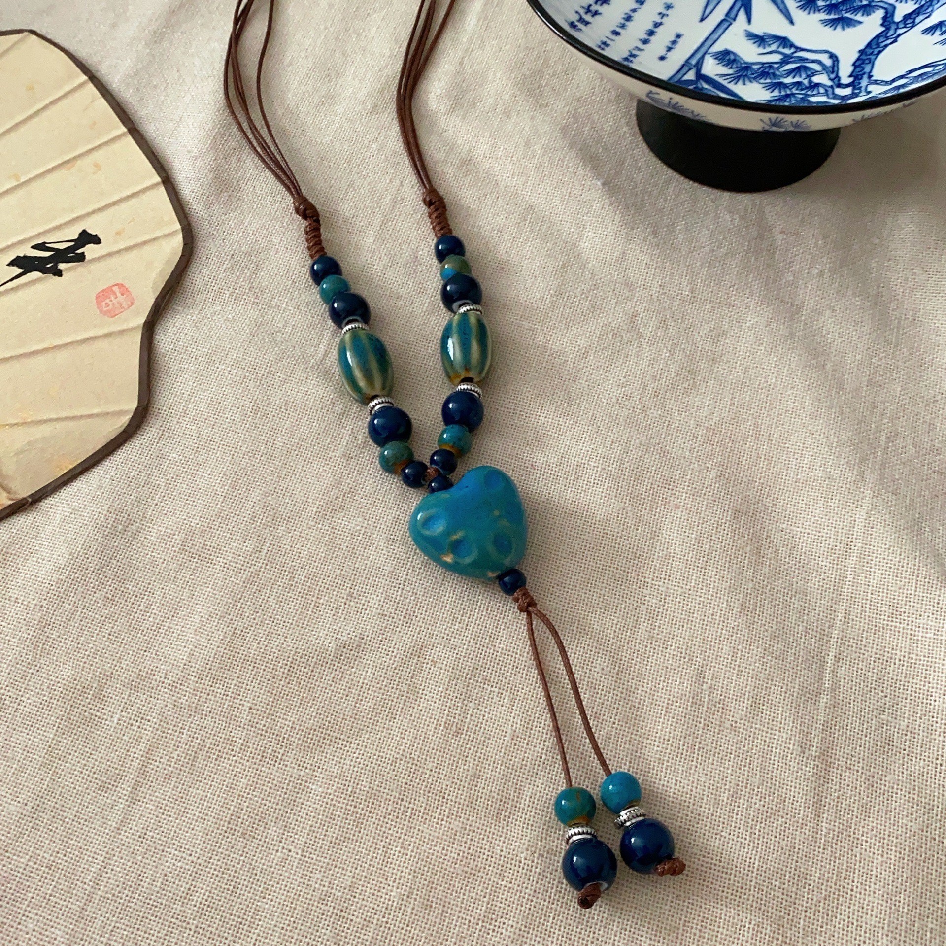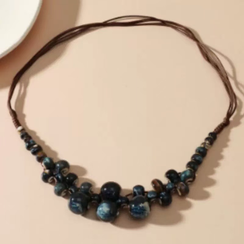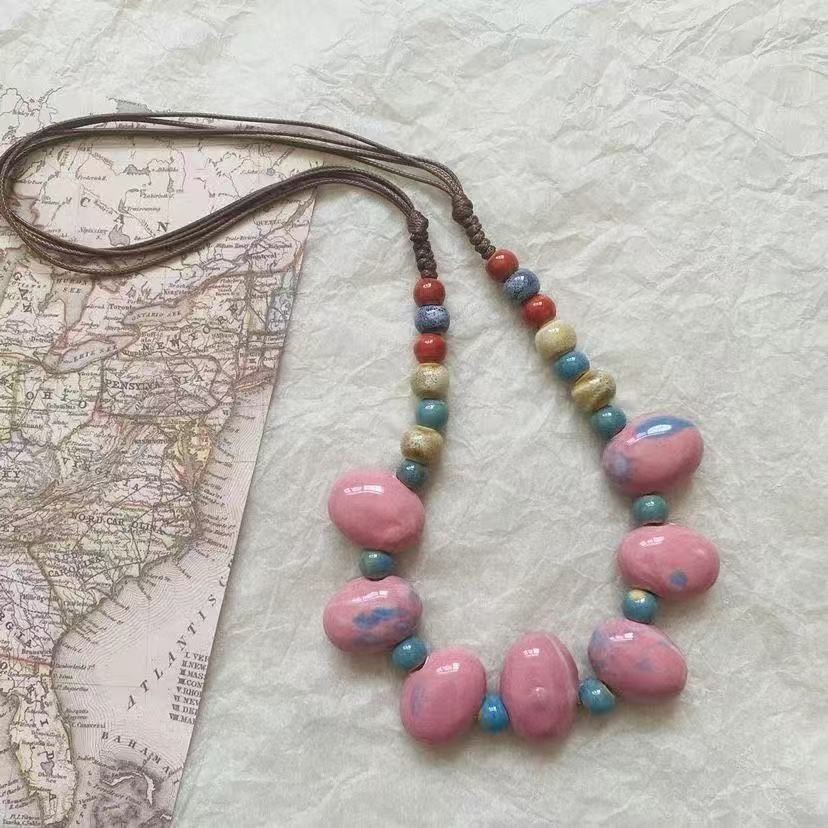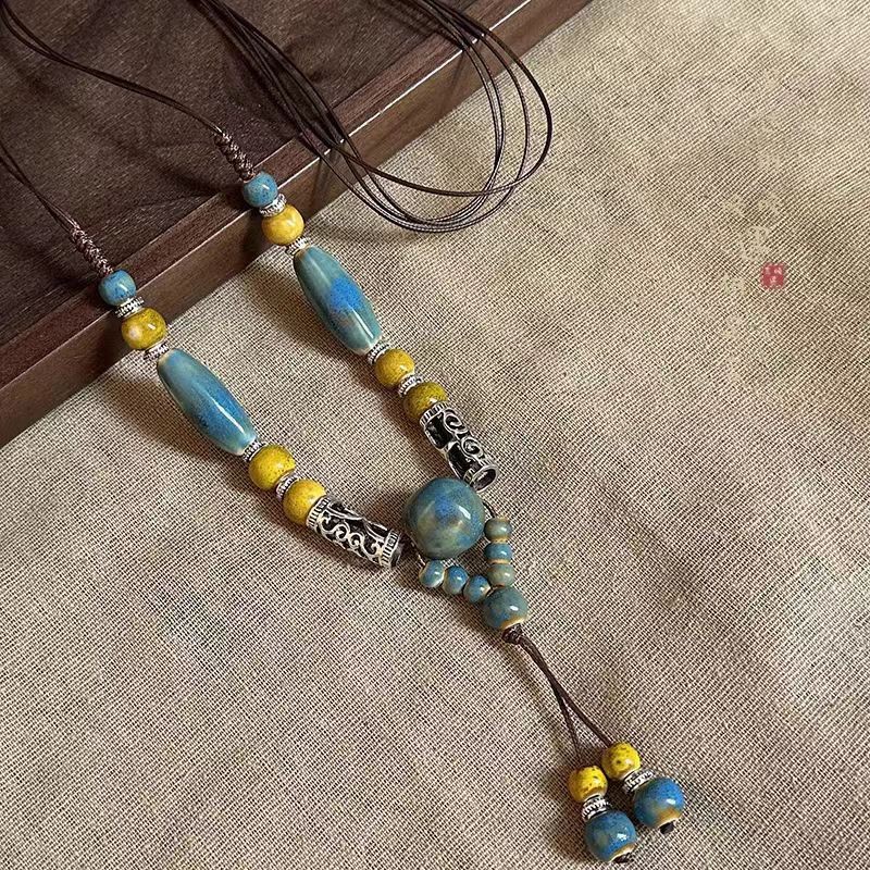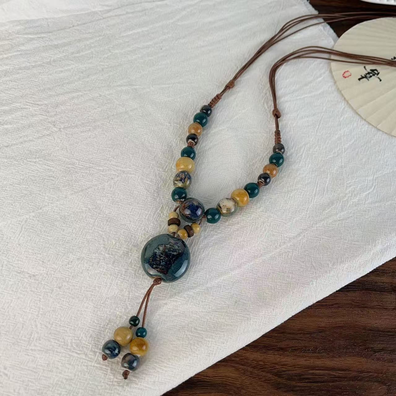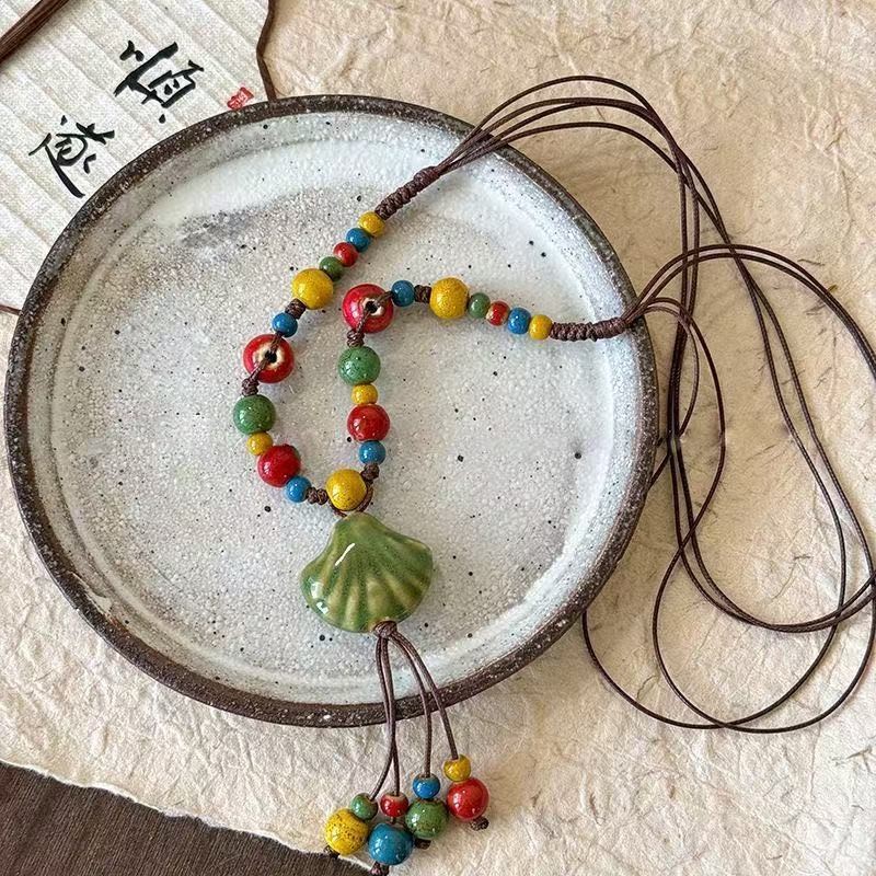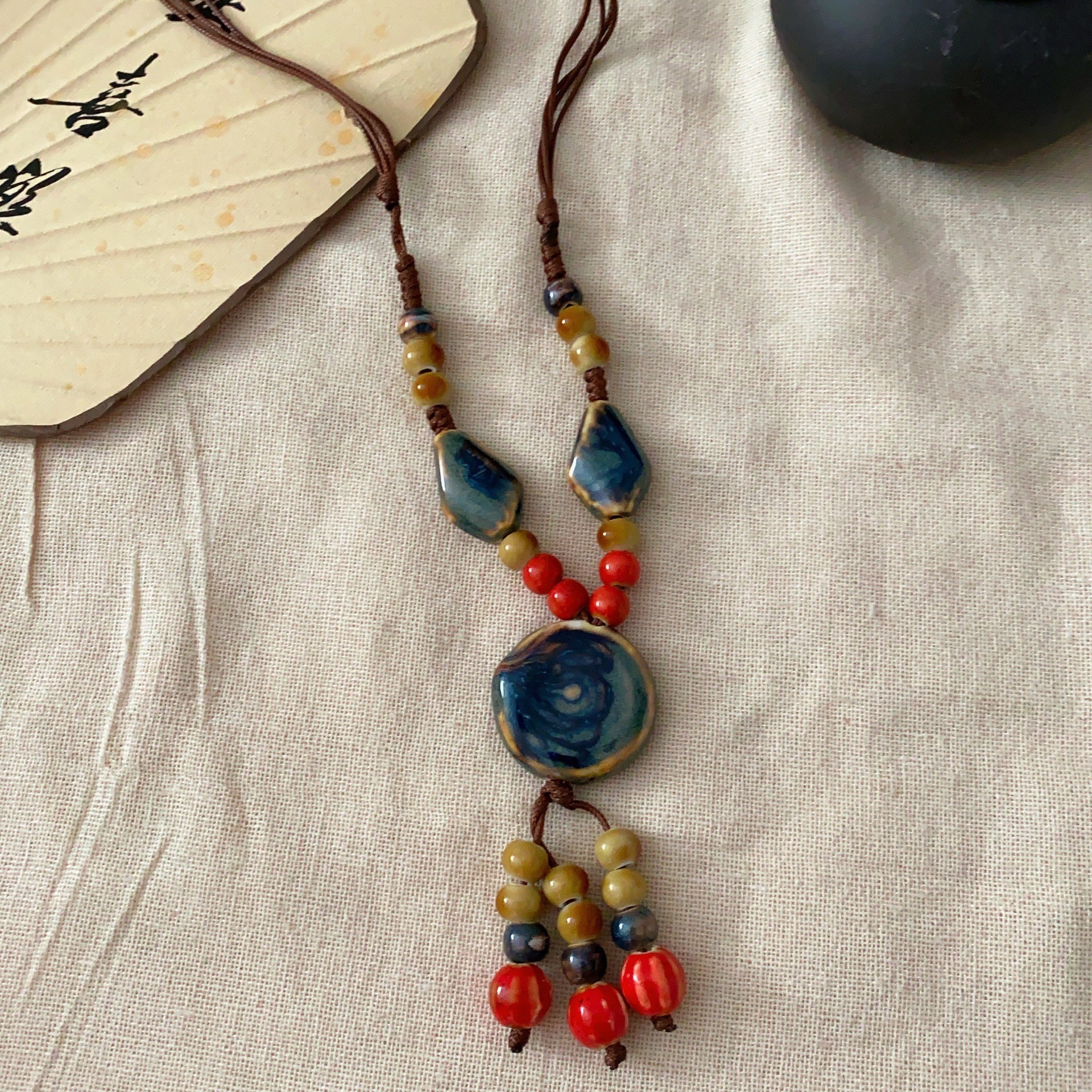 Красочное керамическое ожерелье из бисера в этническом стиле для женщин, новая плетеная цепочка на ключицу в китайском стиле, нишевый дизайн, универсальные аксессуары в стиле ретро