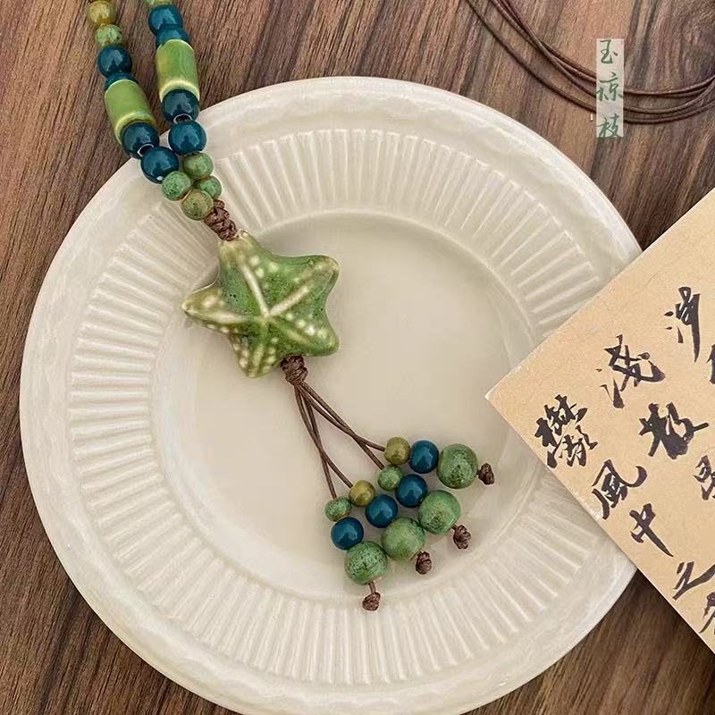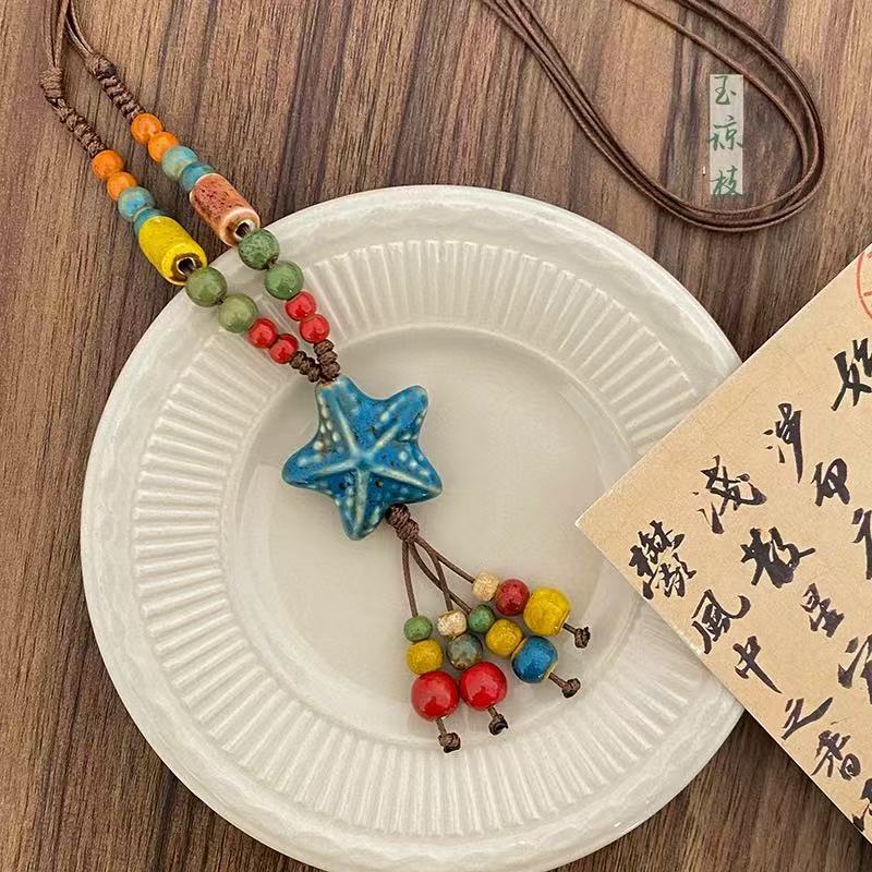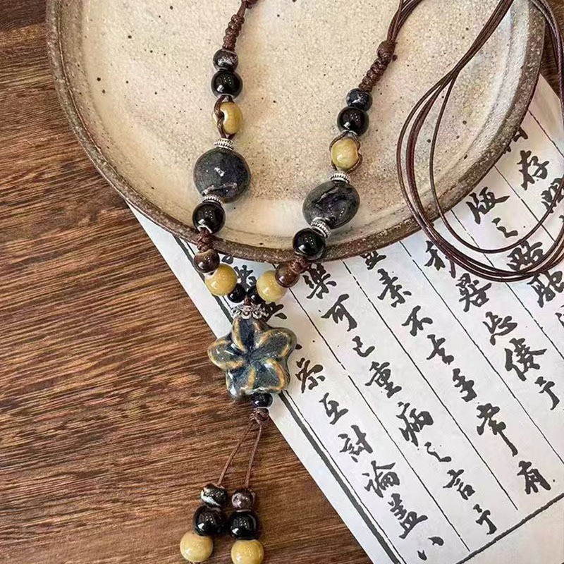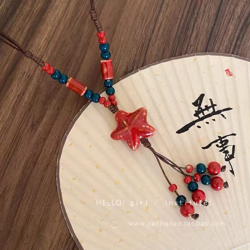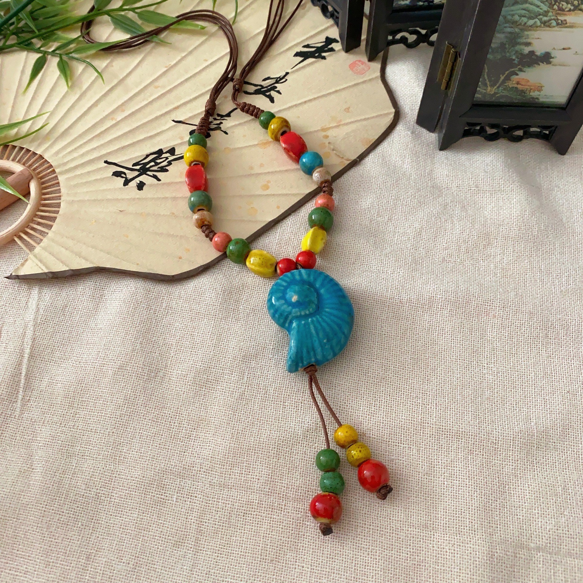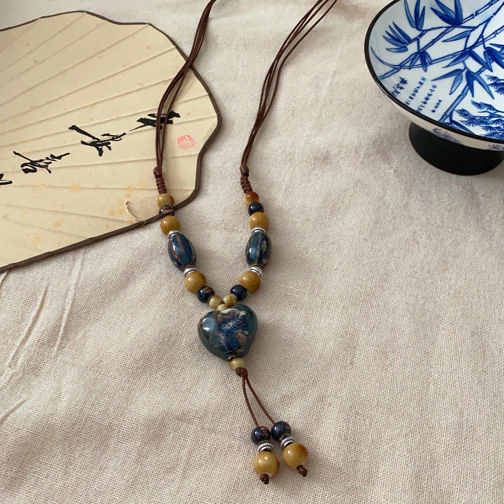 Красочное керамическое ожерелье из бисера в этническом стиле для женщин, новая плетеная цепочка на ключицу в китайском стиле, нишевый дизайн, универсальные аксессуары в стиле ретро