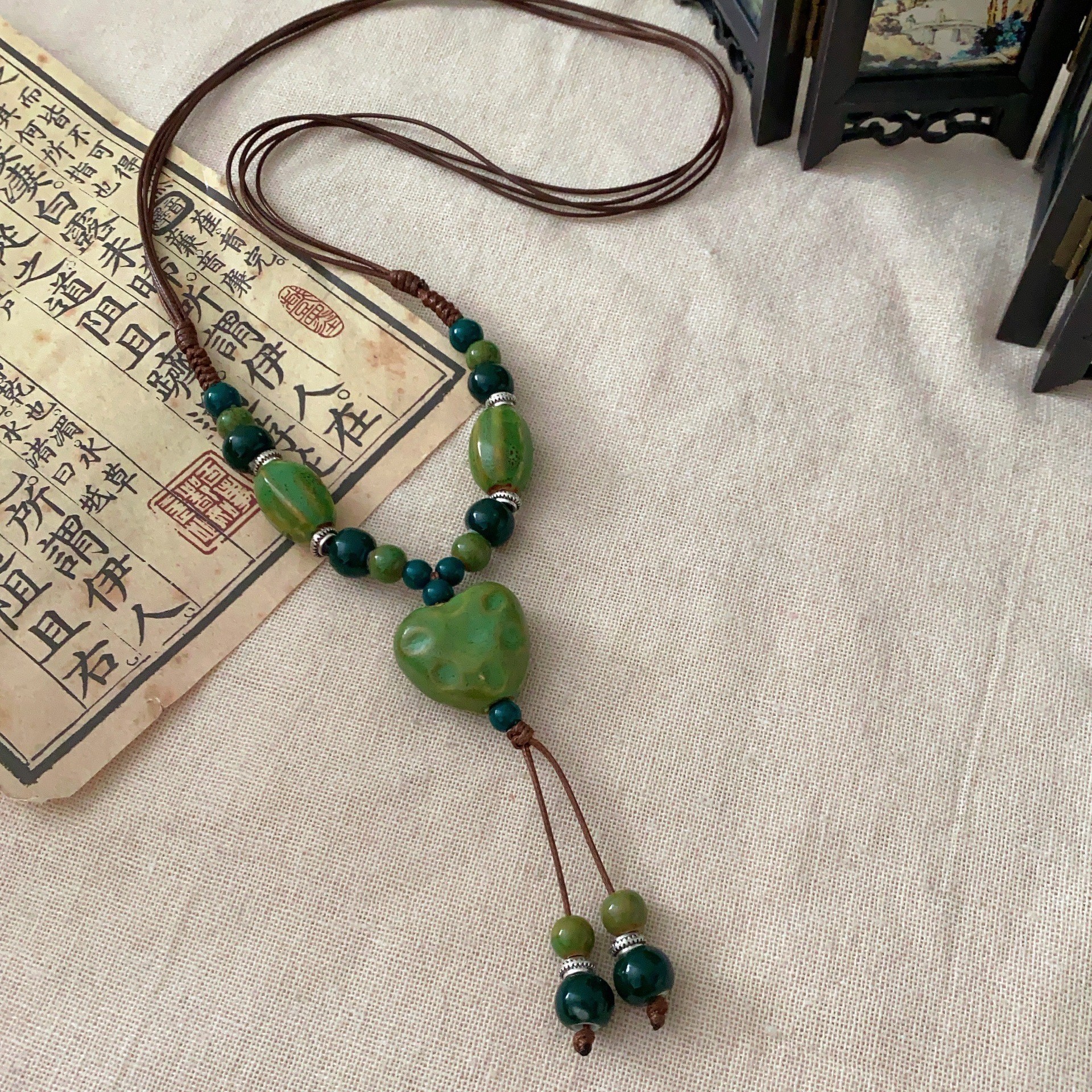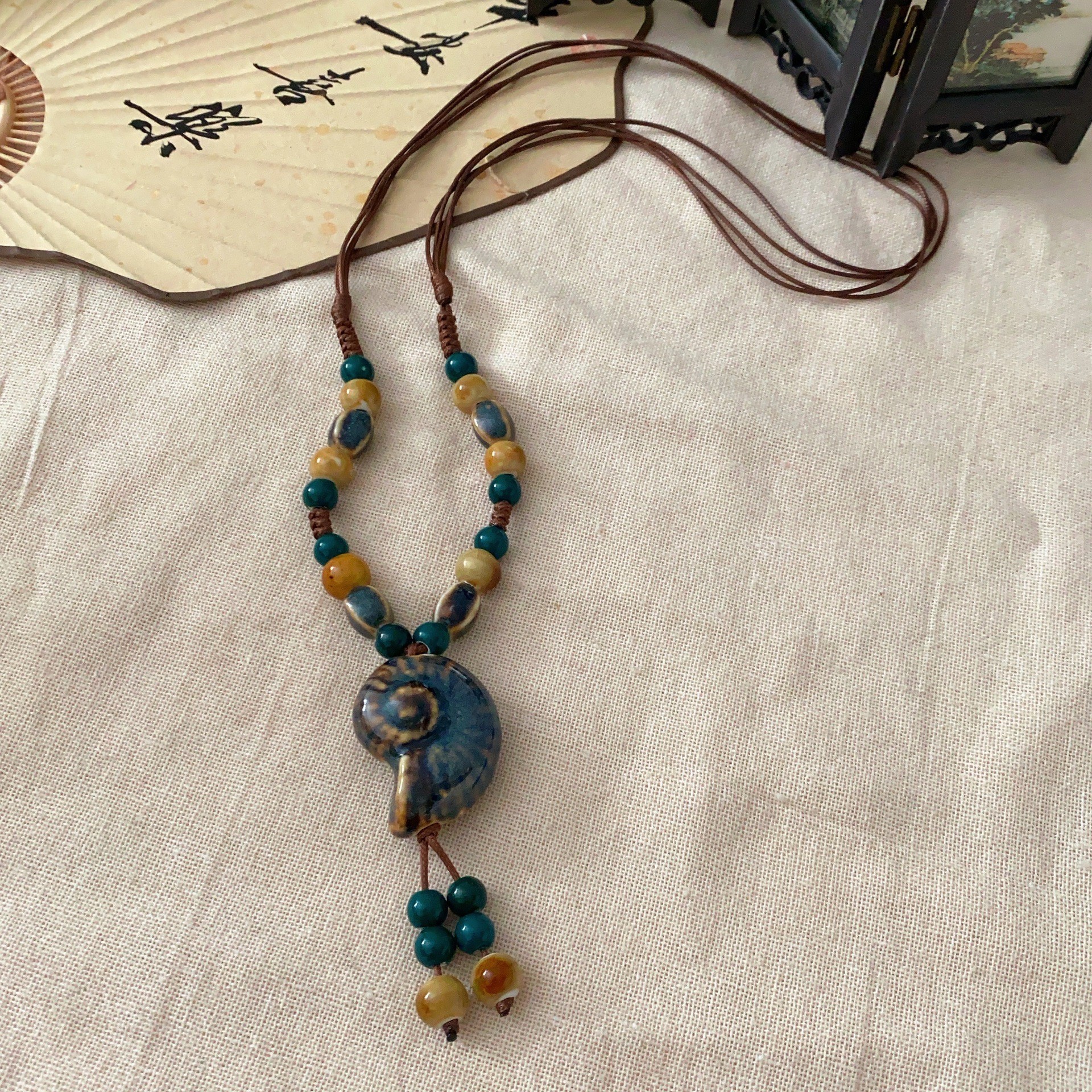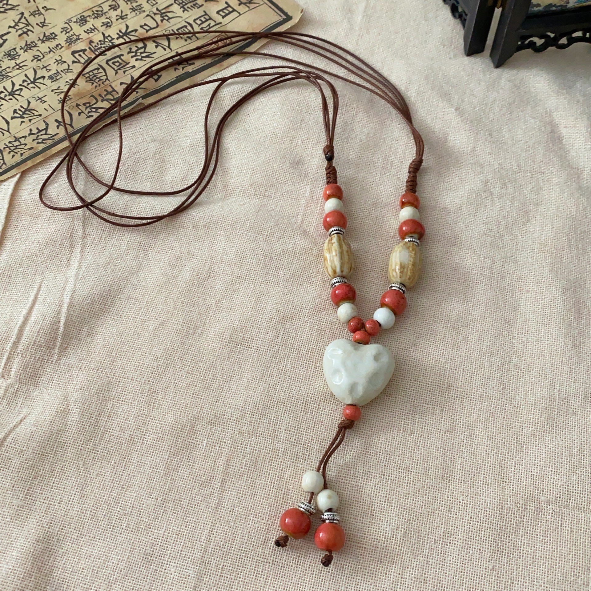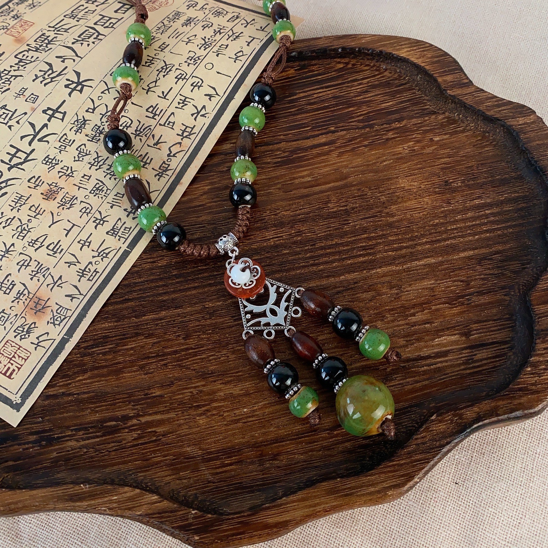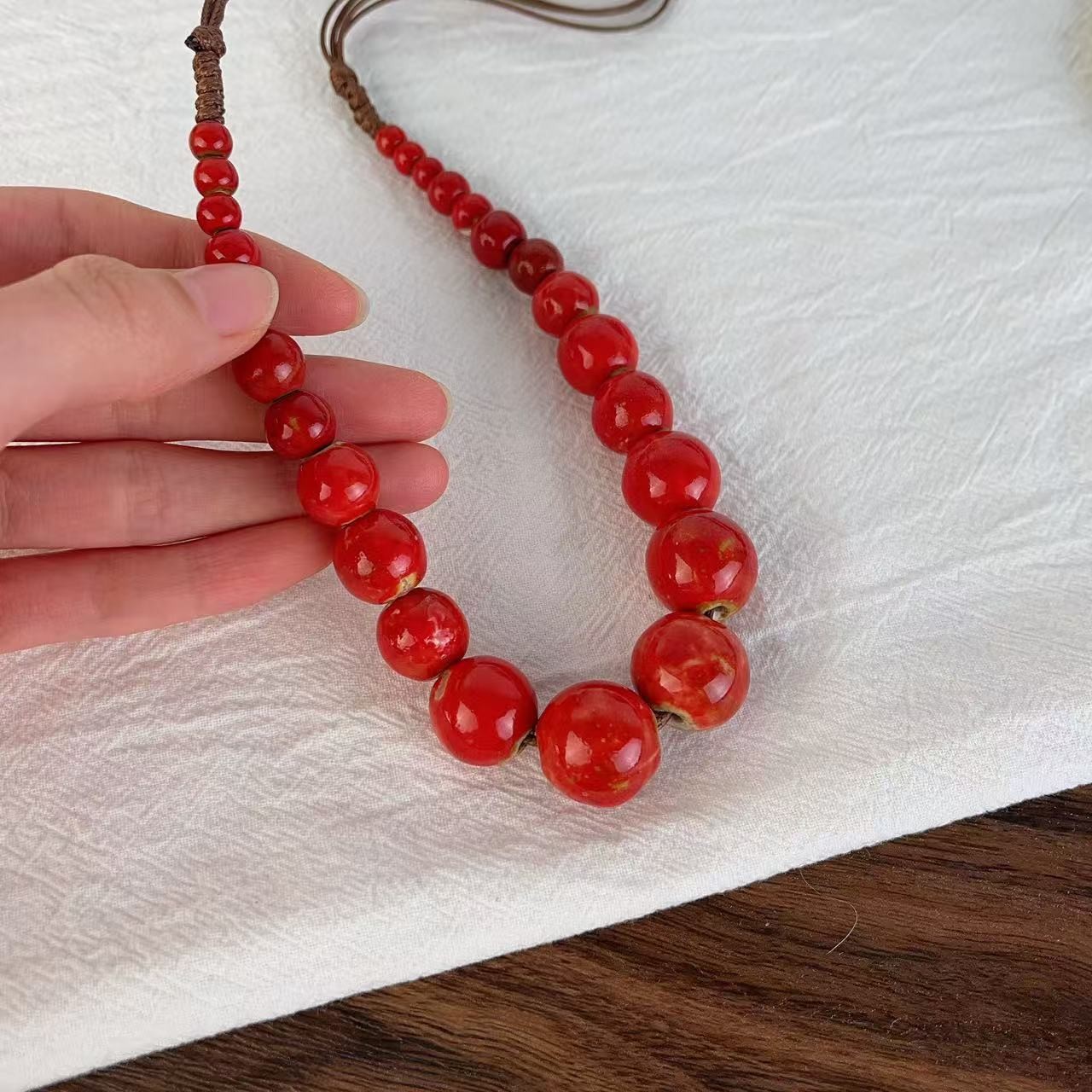 Красочное керамическое ожерелье из бисера в этническом стиле для женщин, новая плетеная цепочка на ключицу в китайском стиле, нишевый дизайн, универсальные аксессуары в стиле ретро