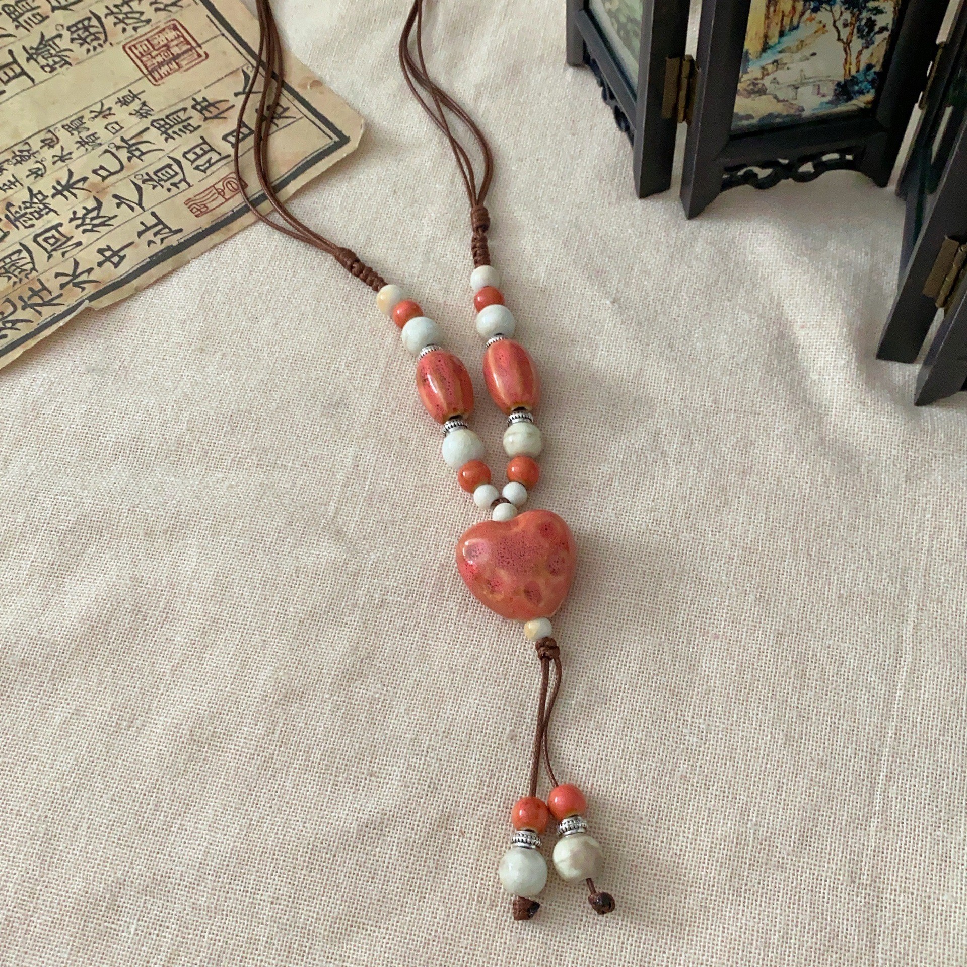 Оранжевое керамическое ожерелье с подвеской в форме сердца
