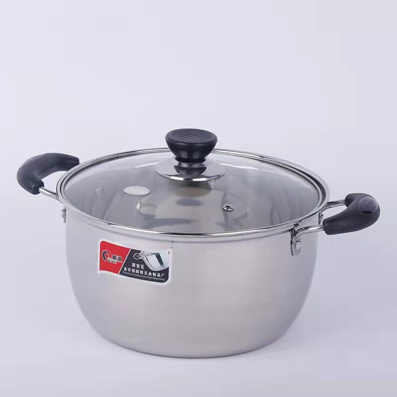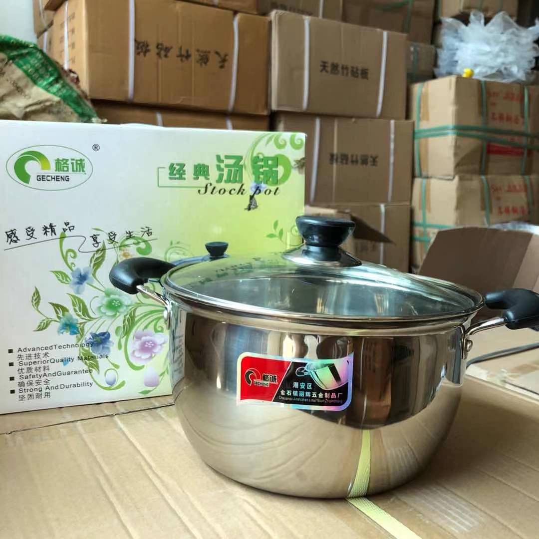 Gecheng Бытовая глубокая кастрюля из нержавеющей стали с крышкой Бытовая утолщенная глубокая стеклянная крышка для супа из нержавеющей стали