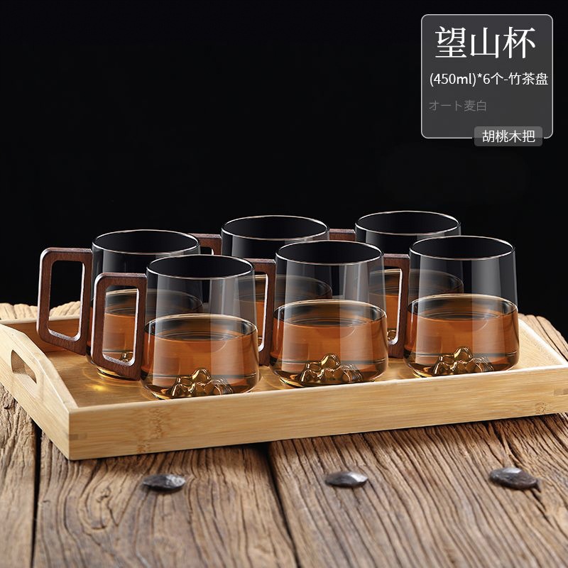 Ручка из североамериканского ореха, сине-серая, 450 мл, 6 штук + бамбуковый поднос для чая
