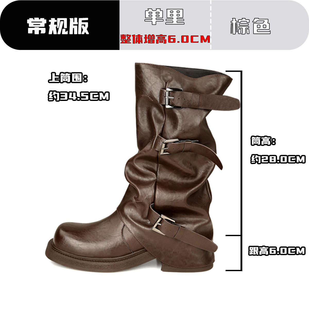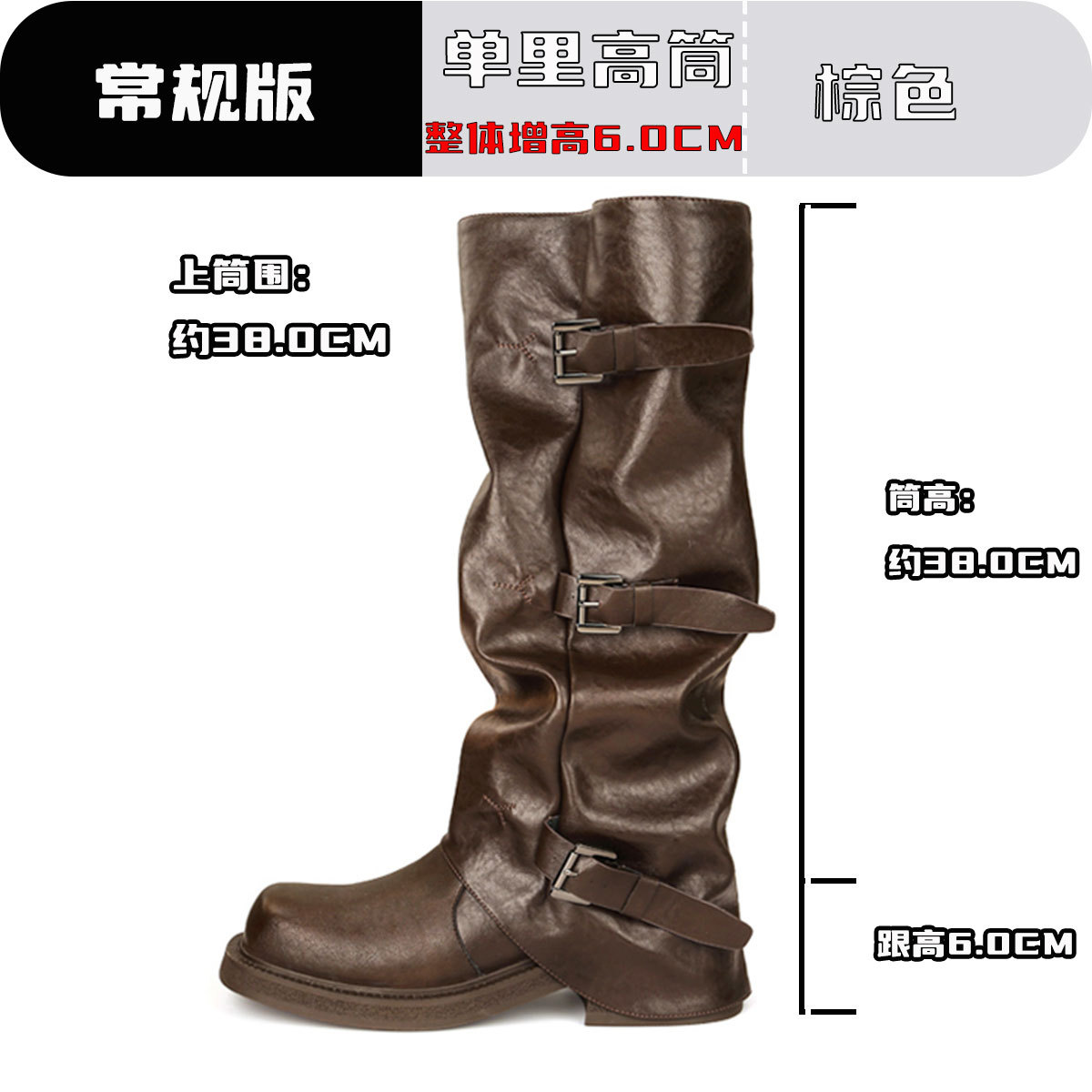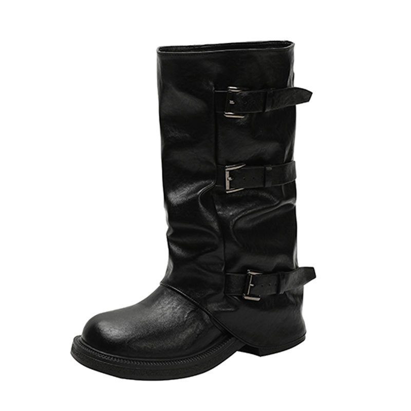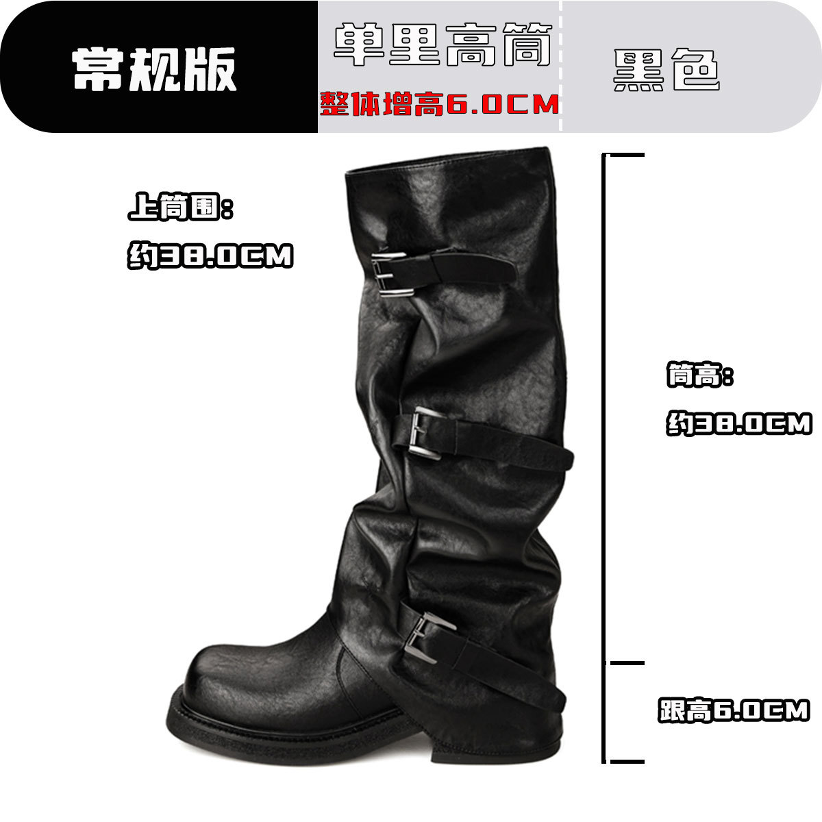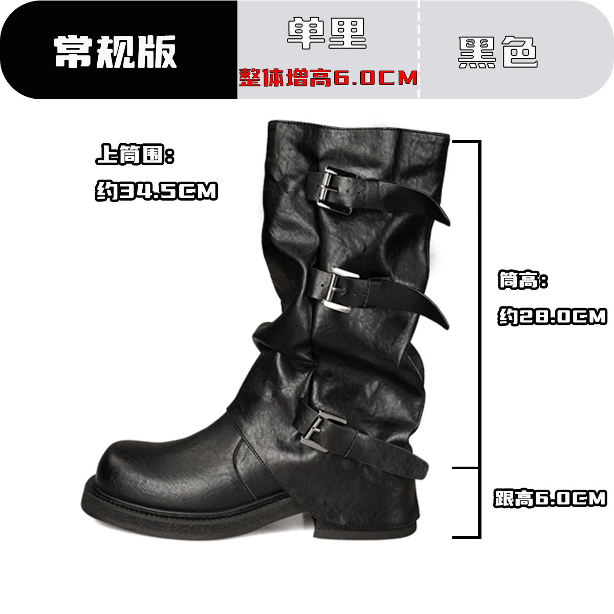 Главная страница > Черные женские ботинки с высокой посадкой и внутренним увеличением роста, европейский и американский стиль, уличная мода, круглый носок, массивный каблук, пряжка ремня, высокие сапоги до колена, плиссированные высокие сапоги для верховой езды.