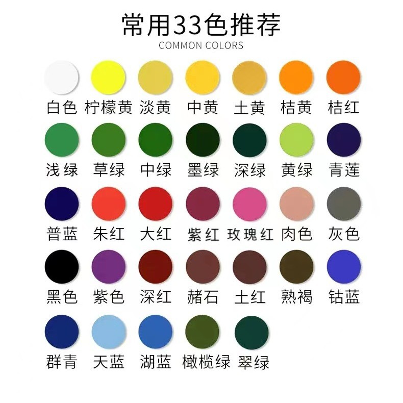 Обычно используется 33 цвета (количество, пожалуйста, возьмите 33 бутылки)