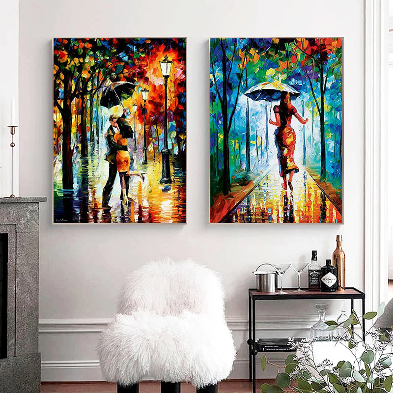 Лесная улица Дождливый день абстрактный пейзаж холст роспись настенная роспись плакат искусство спальня гостиная современная декоративная живопись