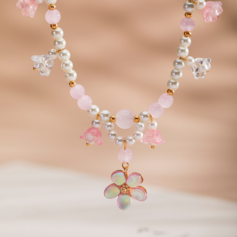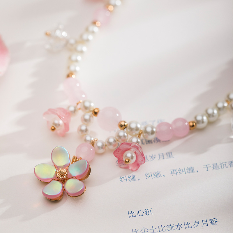 Главная страница > Niang Niang старинное ожерелье женский супер-сказочный розовый лепесток кулон весенний ландыш жемчуг мягкий ханьфу аксессуары