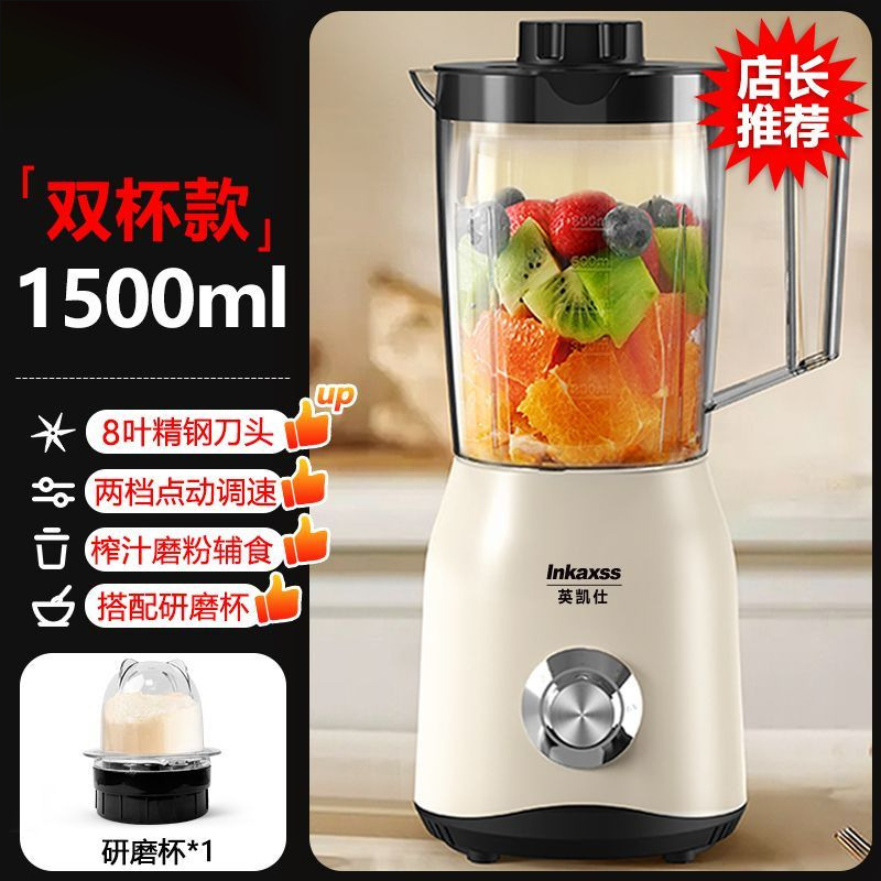 Модель с полированной двойной чашкой [1,5 л], модернизированная до большой емкости + нож с 8 лезвиями из нержавеющей стали.