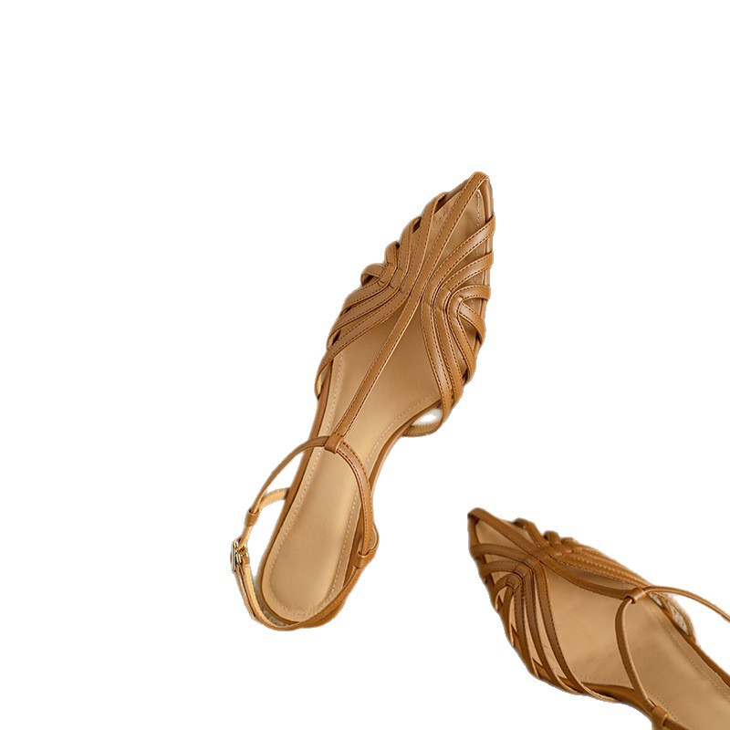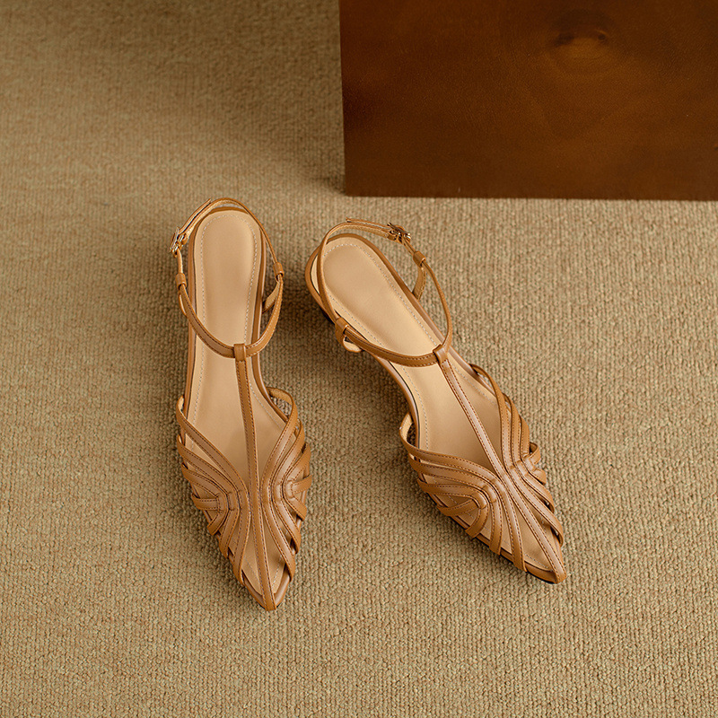 Главная страница > Нишевая роскошная летняя женская обувь ручной работы 2025, трансграничные экспортные сандалии в стиле ретро, верхняя одежда, толстый каблук с вырезом, острым носком, суперволокно