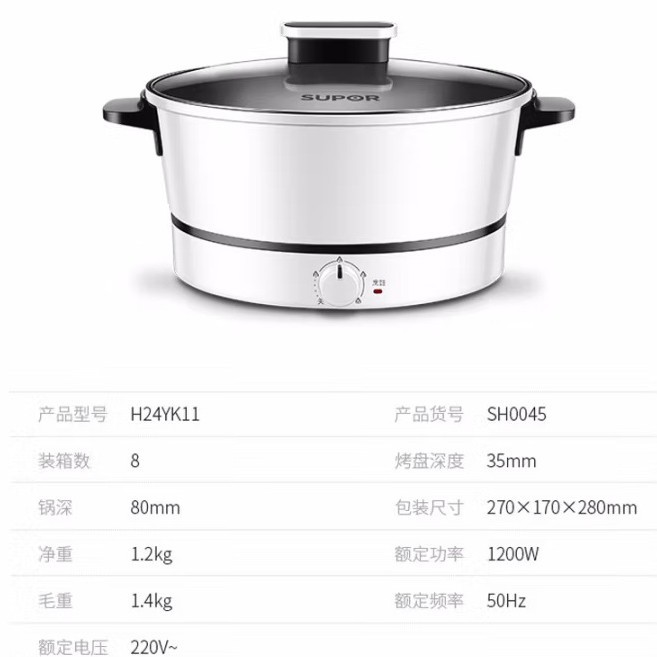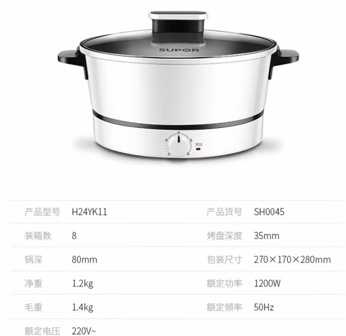 Главная страница > Электрическая кастрюля Supor, многофункциональная электрическая кастрюля емкостью 3 л, электрическая кастрюля H24YK11, внутренний резервуар с антипригарным покрытием, высокая мощность
