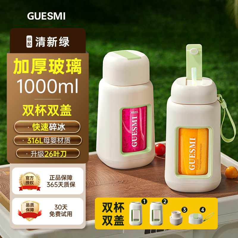 Модель Fresh Green-Glass, двойная чашка, 1000 мл [26 ножей, материал 316], крышка для чашки с бесплатной водой