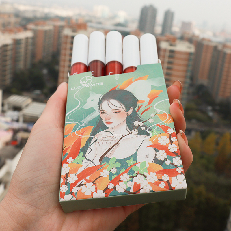 [Одна коробка из пяти] Набор блесков для губ в китайском стиле, интернет-знаменитости, сигаретная коробка в том же стиле, губная помада, студенческая вечеринка, простой нишевый бренд