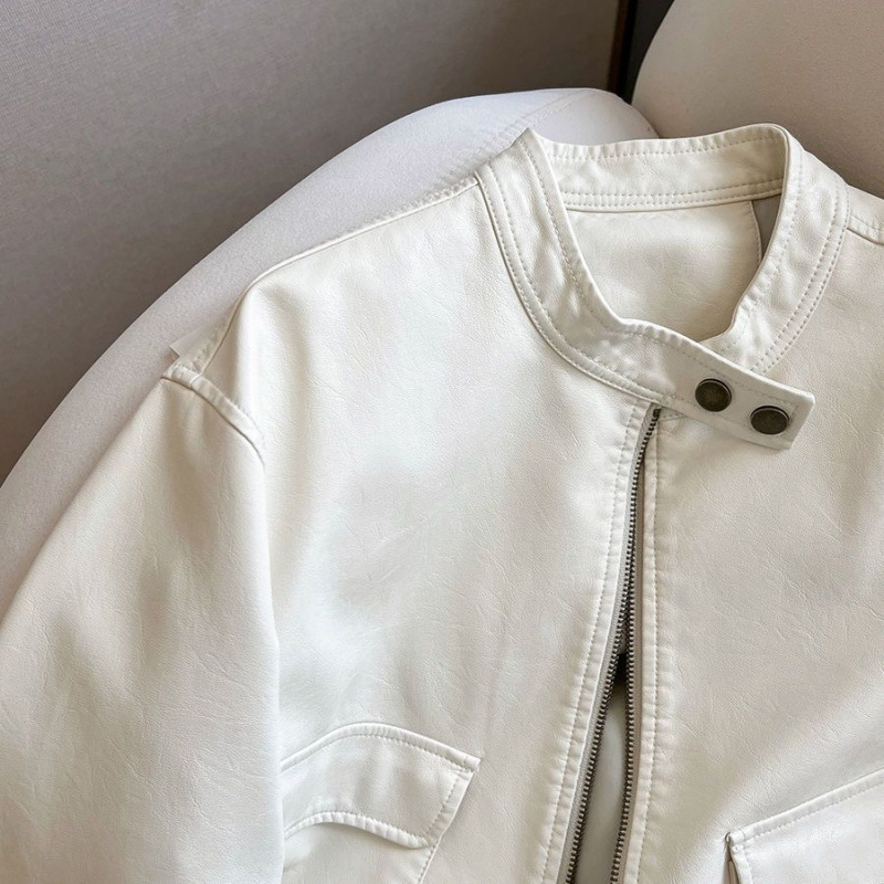 Главная страница > Корейский стиль, универсальная повседневная короткая байкерская куртка из искусственной кожи, женская весенняя новая модная куртка в стиле ретро, пальто