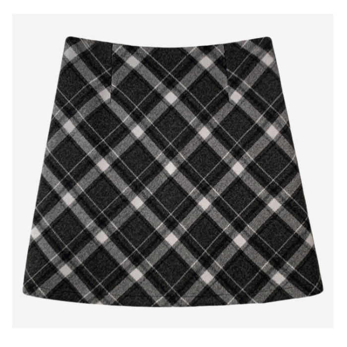 Волосатая клетчатая юбка бюст женский 2024 осень и зима толстая талия тонкая