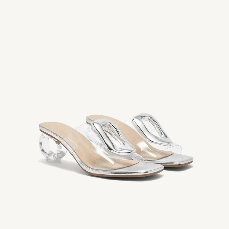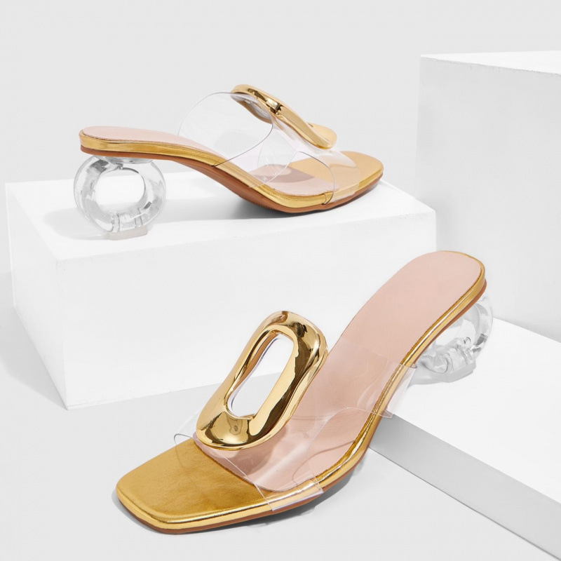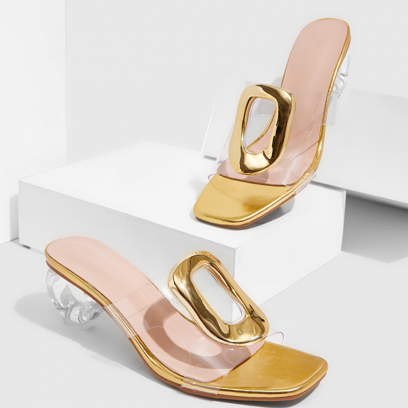 Главная страница > Женские босоножки на высоком каблуке с декоративной пряжкой-прямоугольником 2025 года, кристаллический каблук