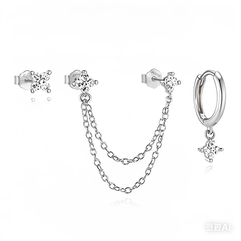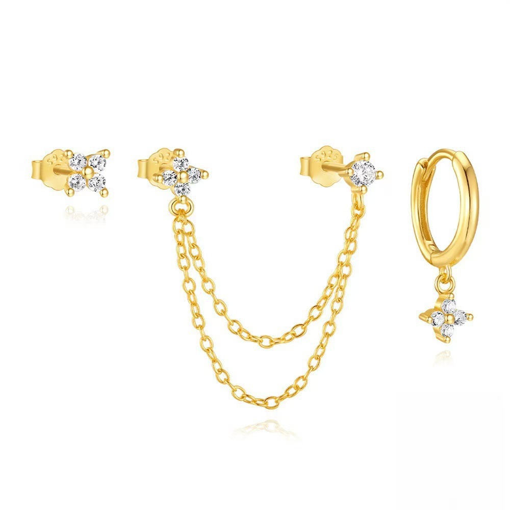 Трансграничный взрыв четырехлистный циркон серьги мода высокого уровня чувство кювета квадратный циркон цепи кисточки набор серьги