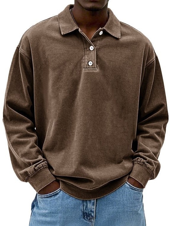 Главная страница > Новая мужская рубашка-поло с длинным рукавом на весну-лето 2025 года для трансграничной торговли (Amazon, AliExpress), однотонная, на пуговицах, пуловер
