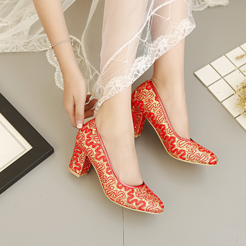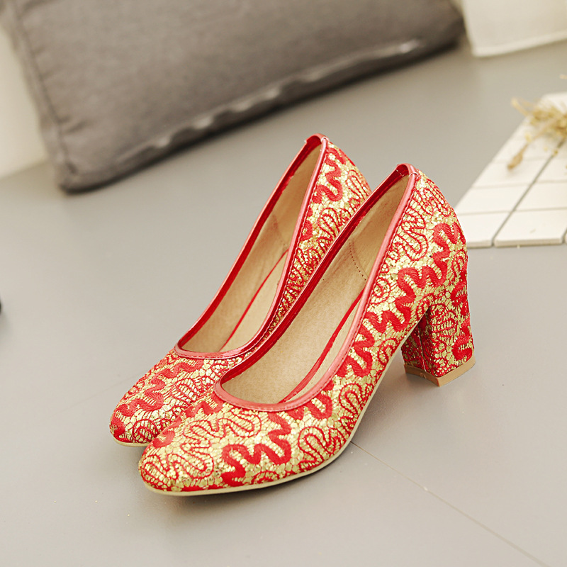 Главная страница > 2AD13 круглая голова толстый каблук высокие каблуки китайские кружева свадебные туфли банкет Cheongsam обувь с низким верхом Женская обувь оптом