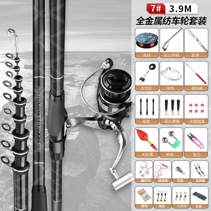 Сверхлегкое жесткое скользящее удилище, специальное удилище для использования как вручную, так и в море, удилище с большим направляющим кольцом, полный комплект, 100m бесплатных лесок