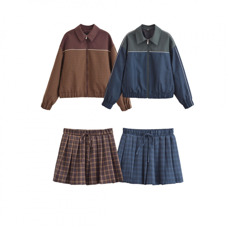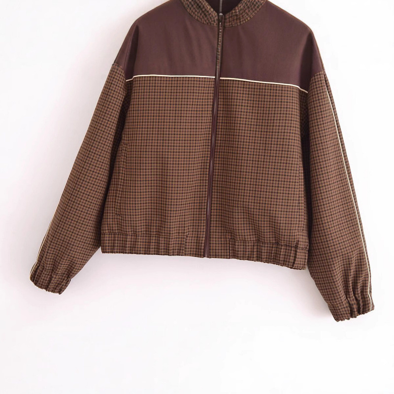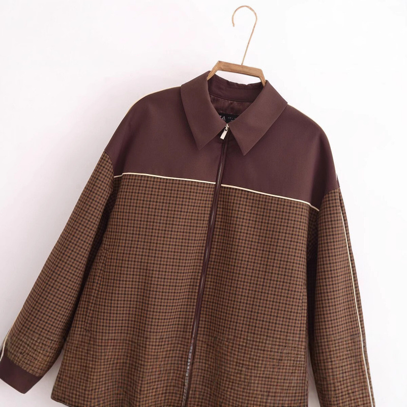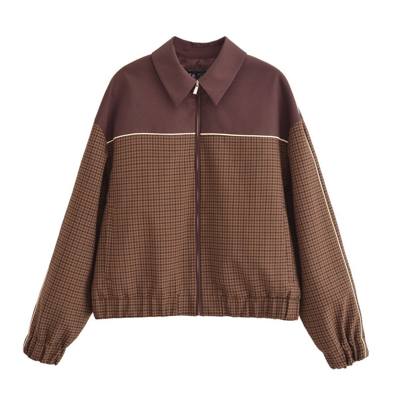 Главная страница > 2025 новая зимняя женская одежда в европейском и американском стиле, клетчатая куртка с длинными рукавами и молнией на лацкане 2010760