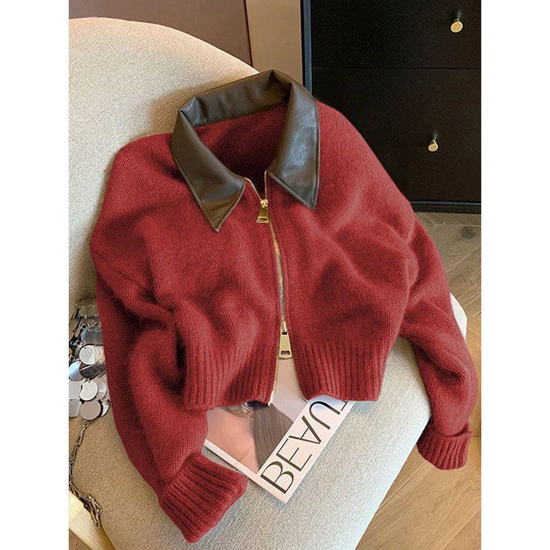 Главная страница > Ленивый ветер мягкий клейкий свитер кардиган свитер женский 2024 новый осенний и зимний большой красный топ...
