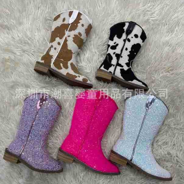 Главная страница > 2024 Европейский и Американский новый лук-молния боковая молния ретро высокие сапоги маленькие девочки западные джинсовые сапоги детская обувь осень-зима