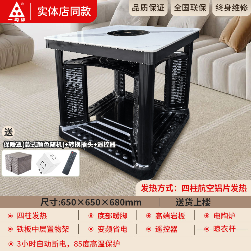 Черно-белая электрическая керамическая плита на квадратном столе 65*65*68 см: четырехколонный обогрев + роскошная стеллаж для хранения среднего уровня