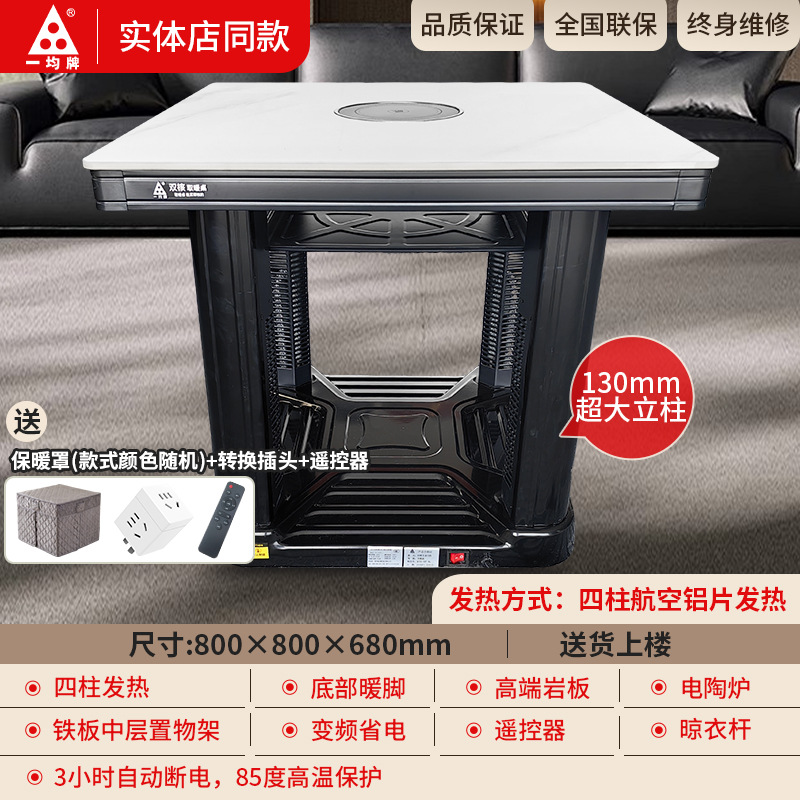 [Хит продаж] Белая электрическая керамическая плита с квадратным столом 80*80*68 см: четырехколонный обогрев + роскошная стойка для хранения среднего уровня + сушилка для одежды