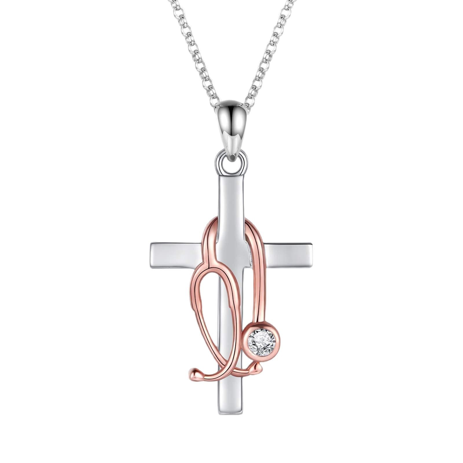 Титановое стальное колье-кулон для медсестер и врачей, подарок на праздник, серебряное колье с крестом, розовое золотое колье с фонендоскопом