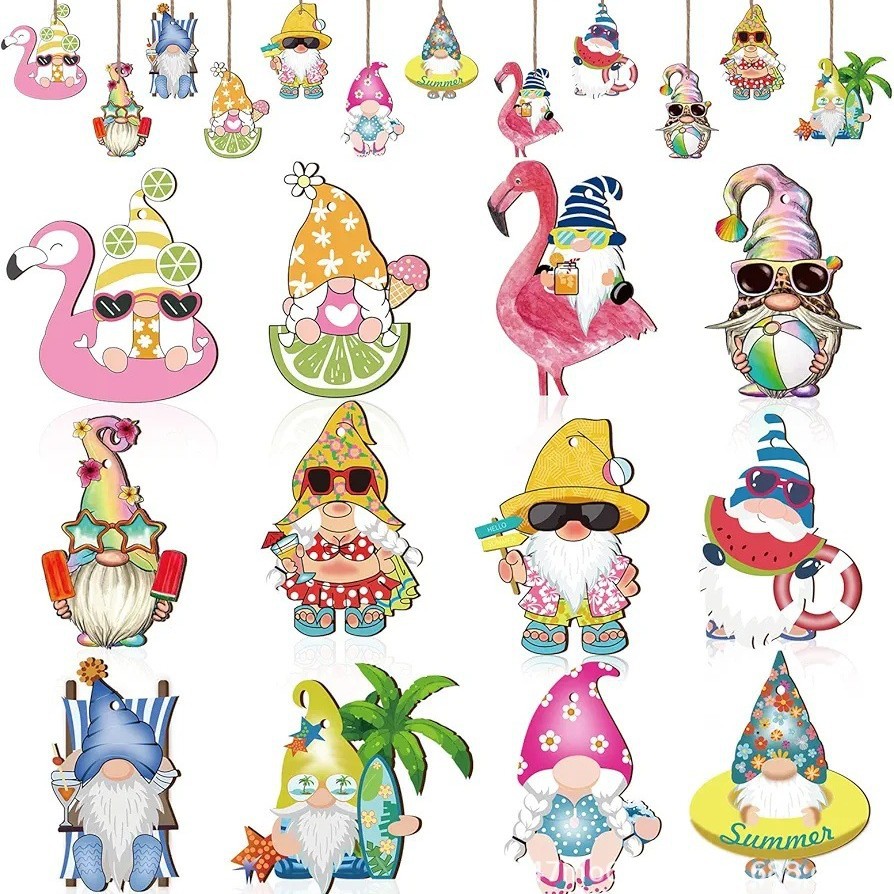 Летние украшения для деревьев в виде гномов, летние фрукты, фламинго, деревянные подвесные украшения, объемные деревенские украшения