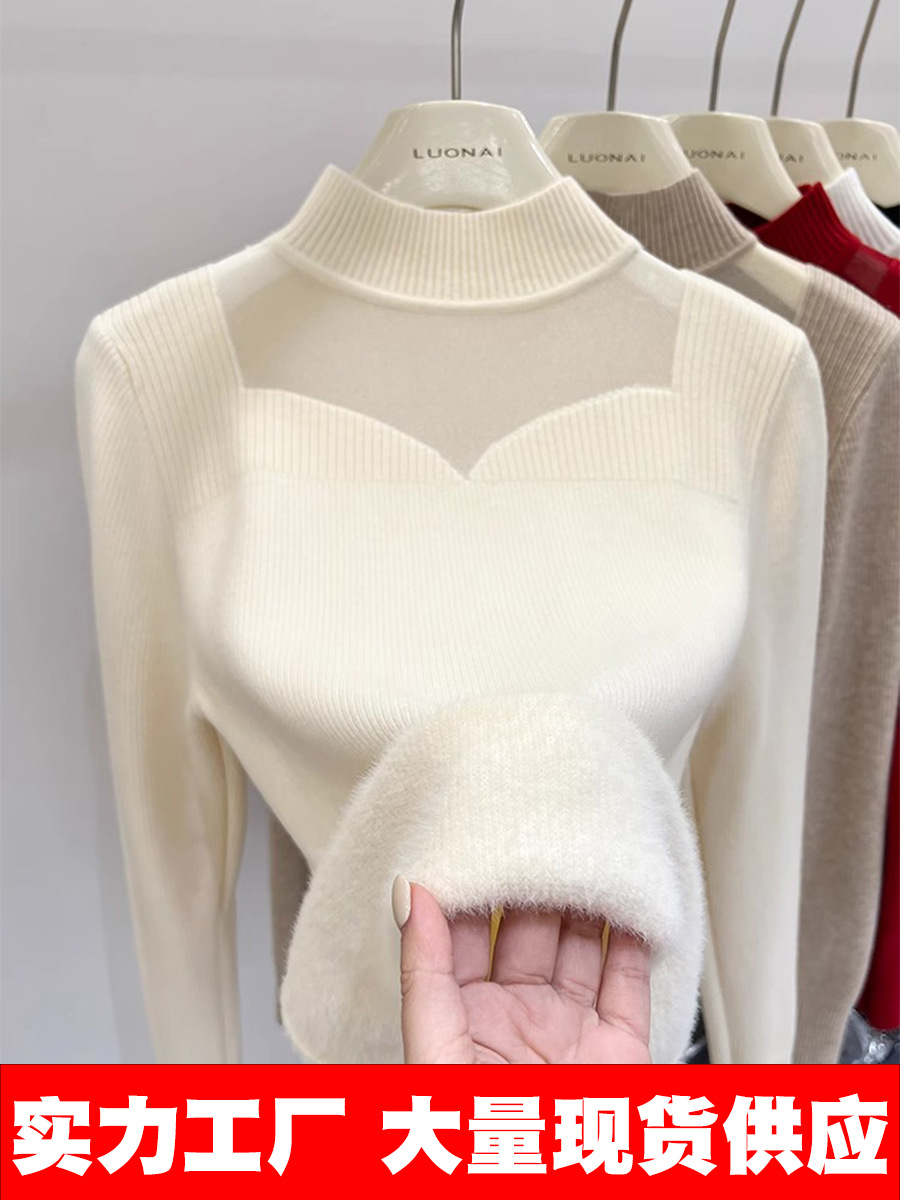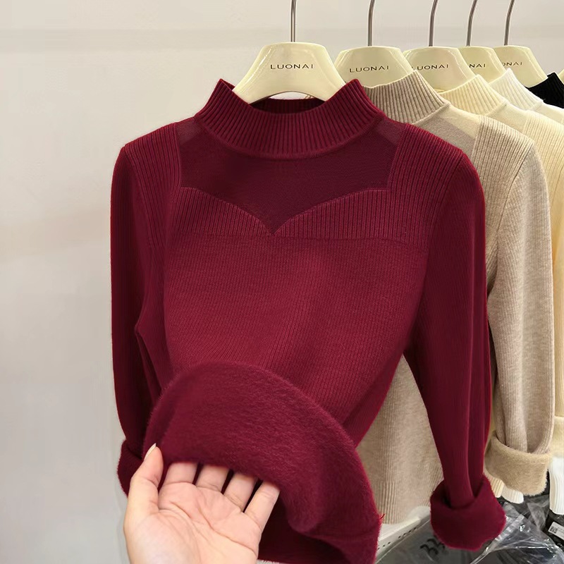Главная страница > Цельный свитер из флиса с начесом и утолщением для женщин, новая модель зимы 2025, модный сетчатый зимний базовый слой, ультратолстый.